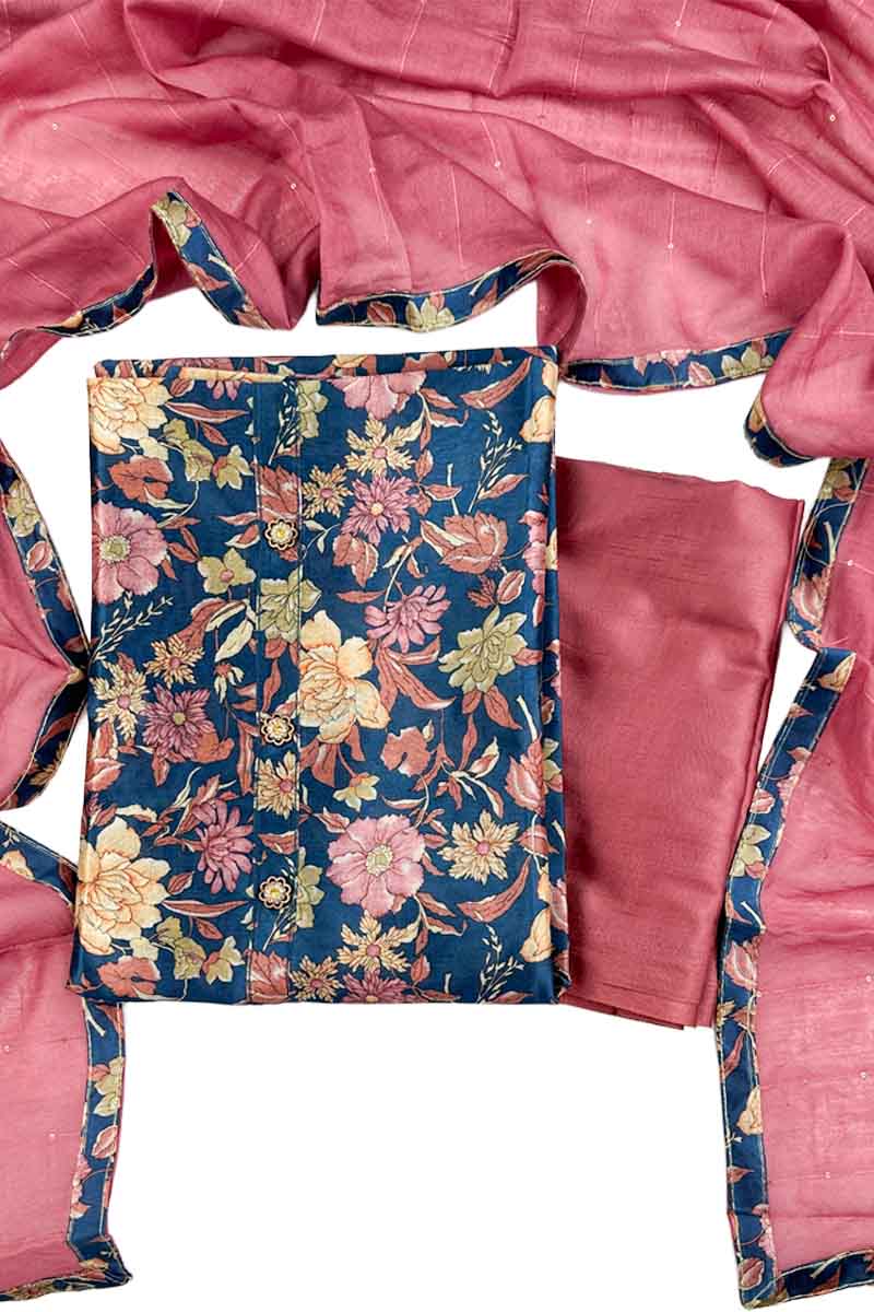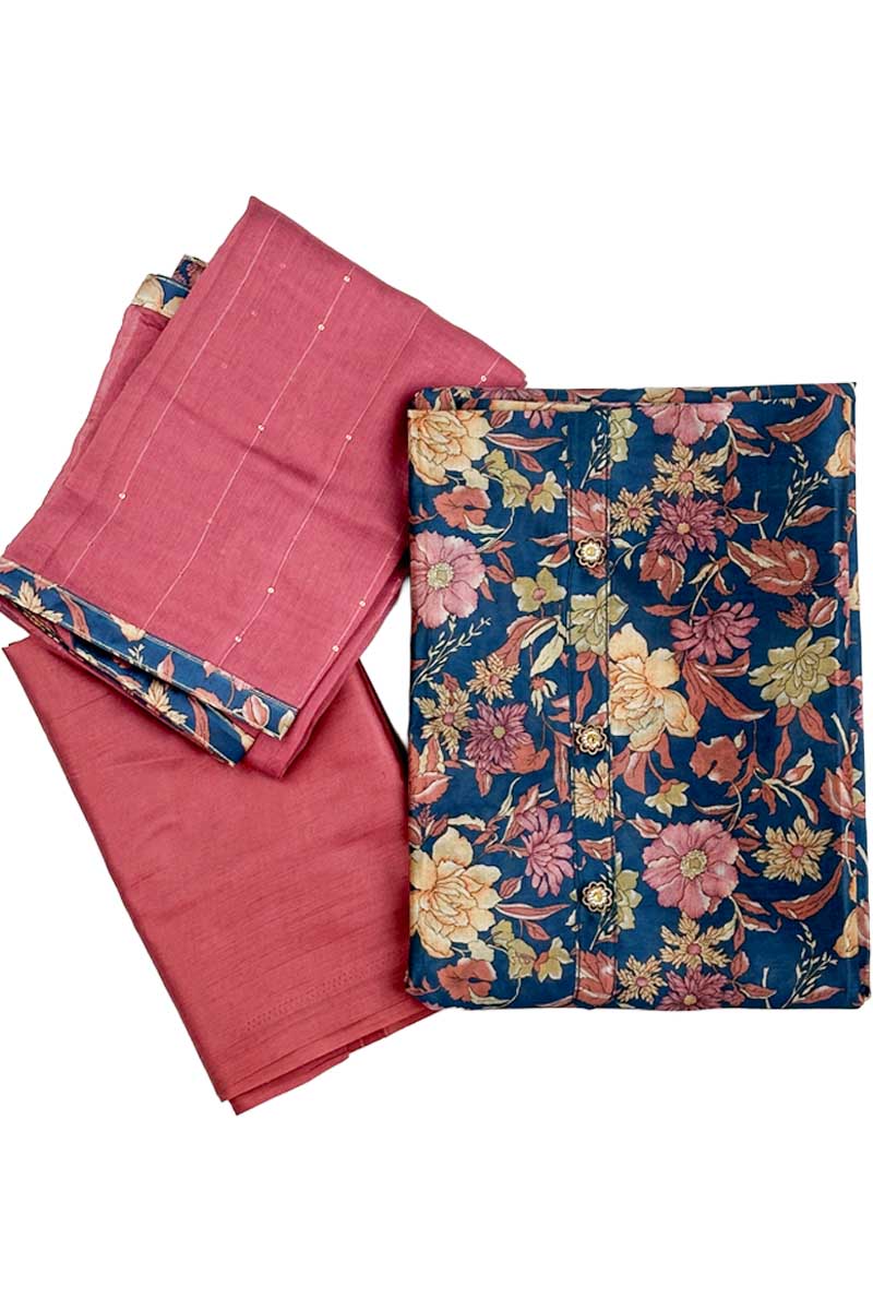 Unstitched Salwar Set - Asam silk | Dark Rouge Pink + Light Blue