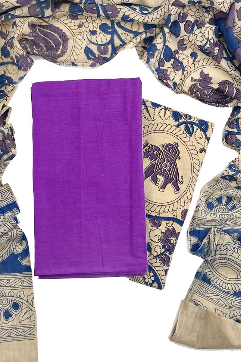 Unstitched Salwar Set - Cotton| Royal Purple + Half White