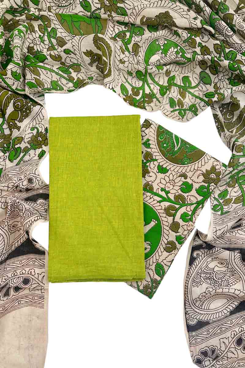 Unstitched Salwar Set - Cotton| Fresh Green + Half White