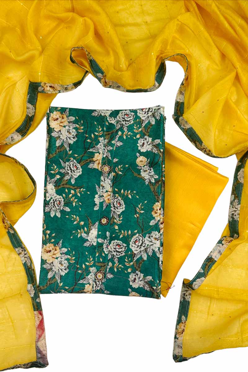 Unstitched Salwar Set - Asam silk | Light Forest Green+ Corn Yellow