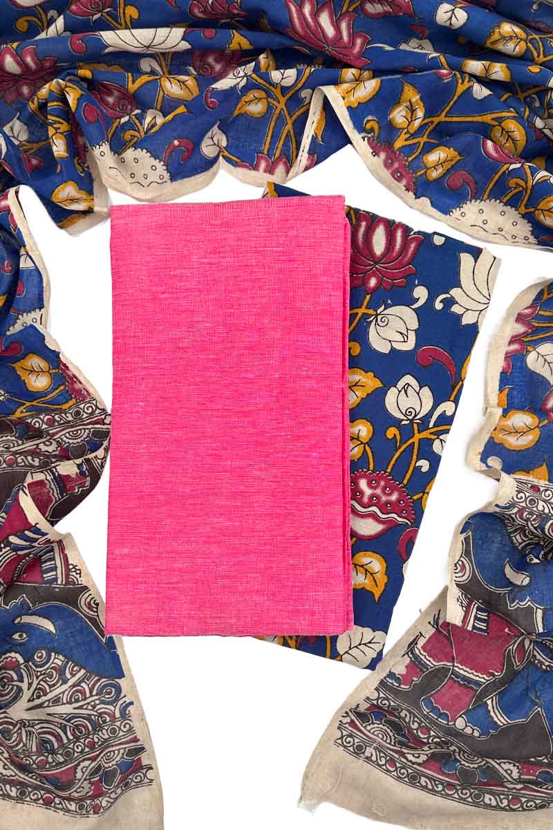 Unstitched Salwar Set - Cotton| Dark Rough Pink + Blue