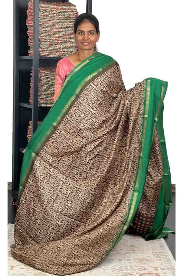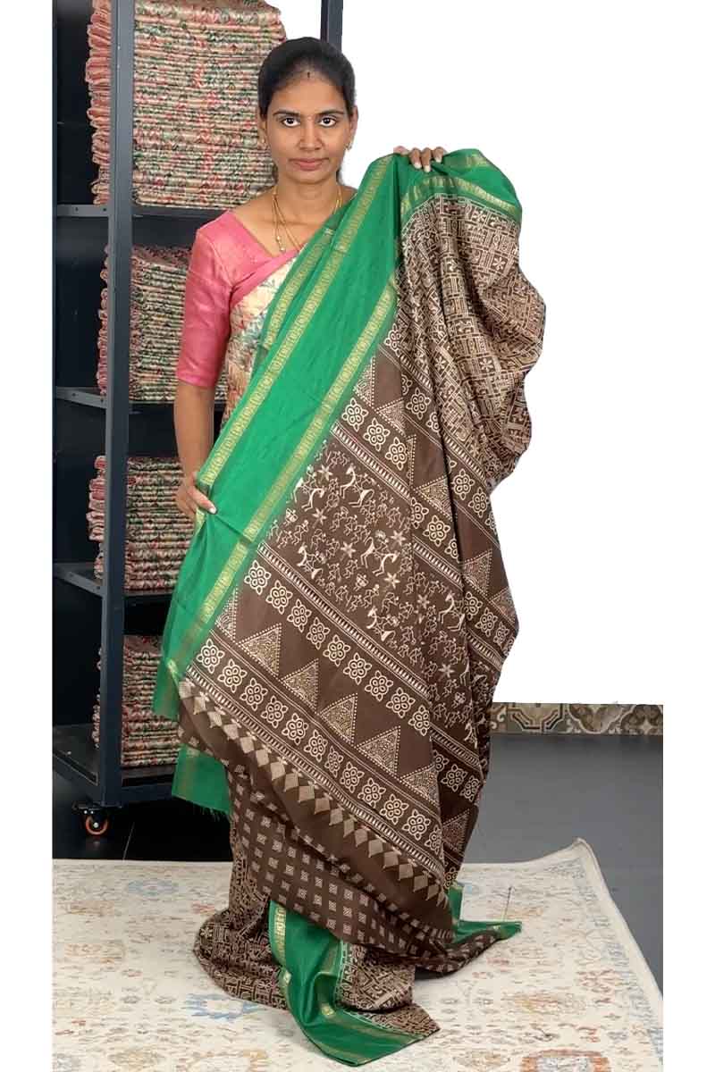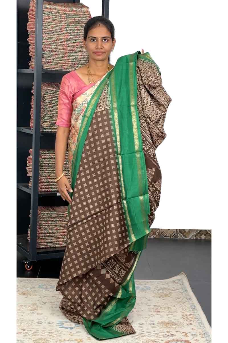 Binny Silk Saree with Retta Petta Border | Chocolate and Forest Green