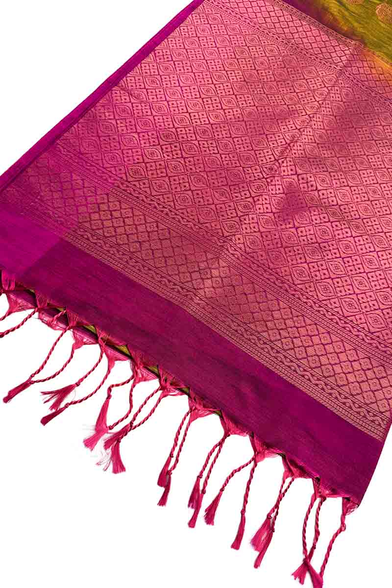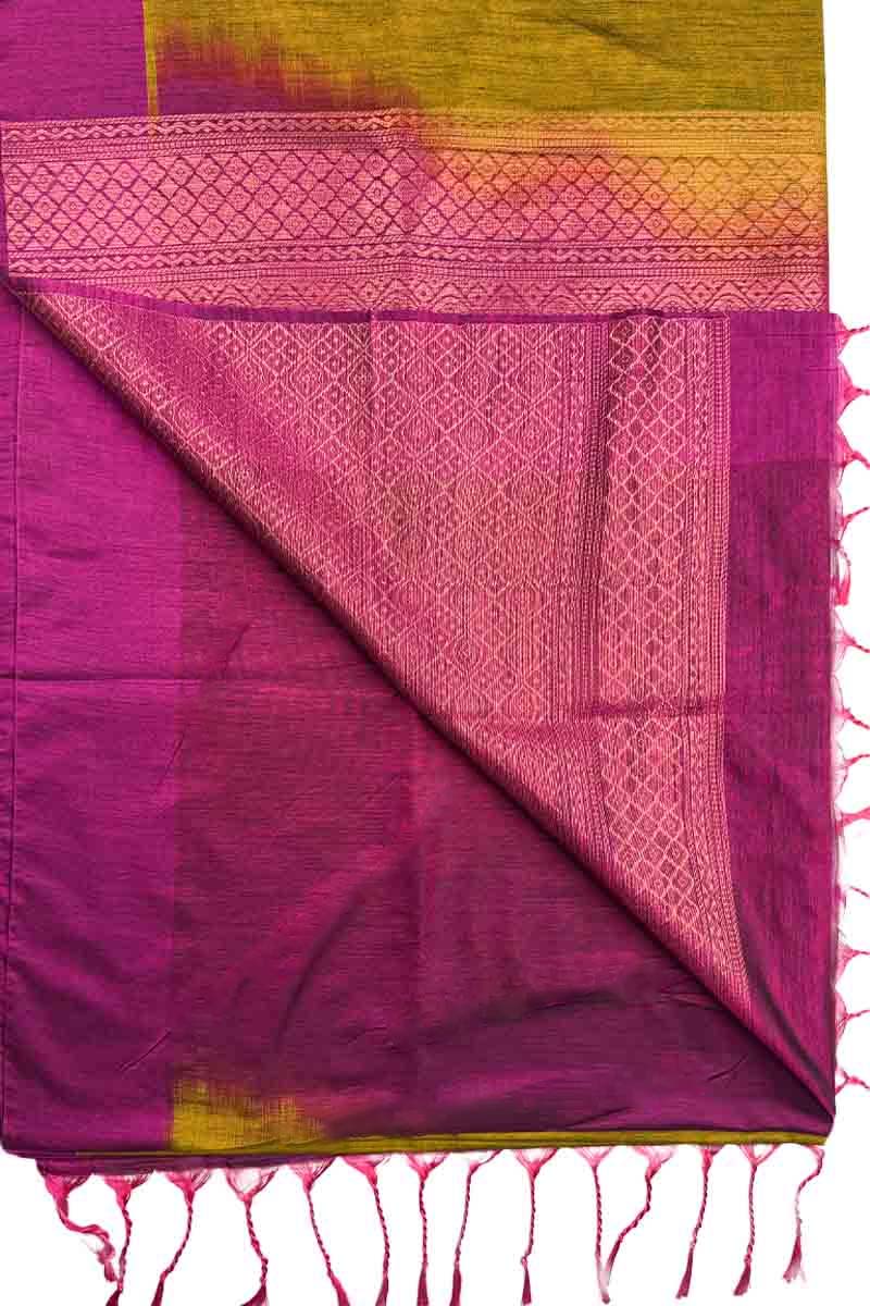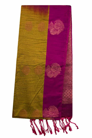 Jute Silk Mix Saree With Fancy Border | Gold + Orchid Purple