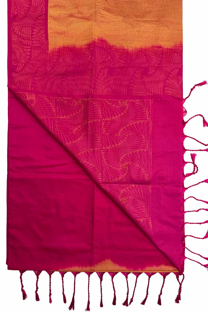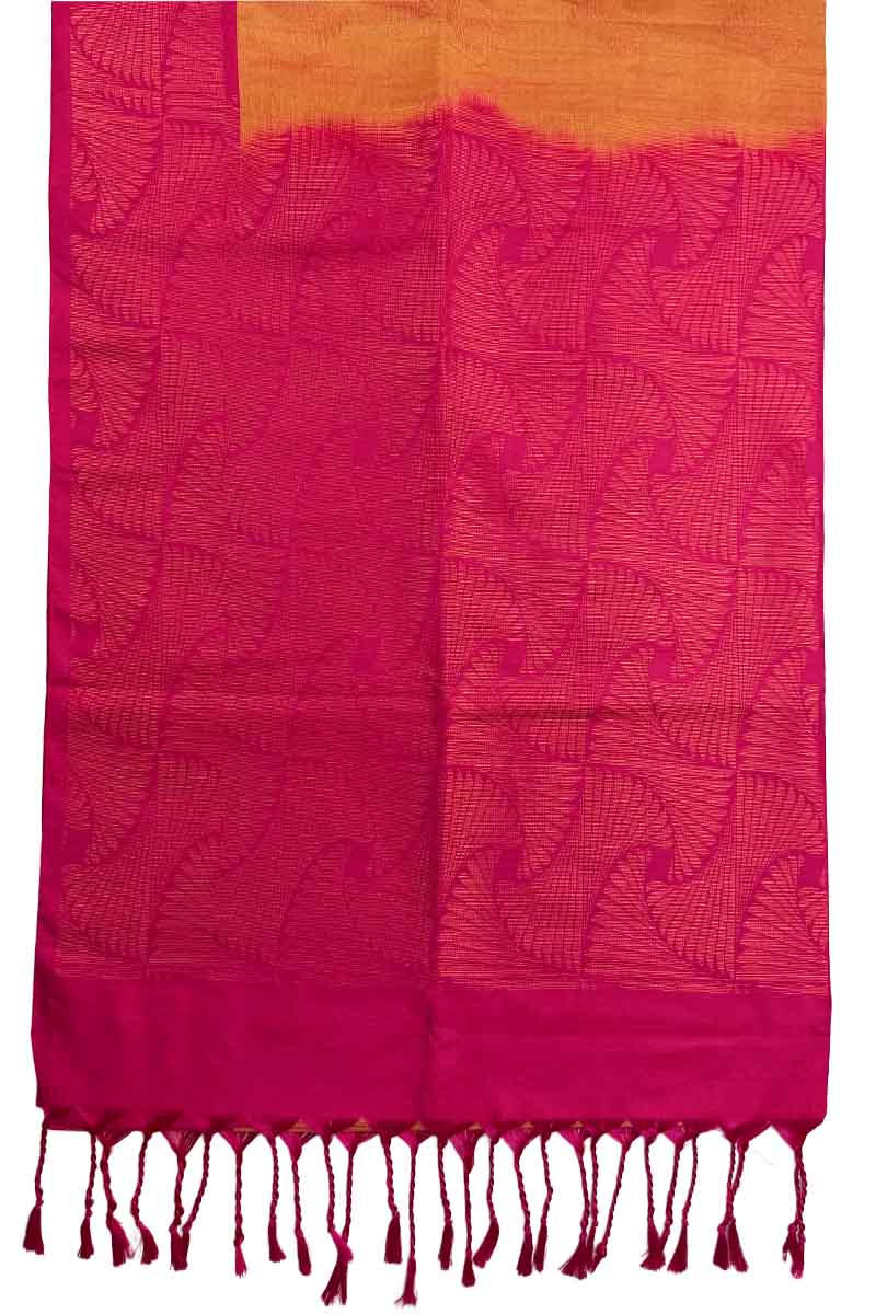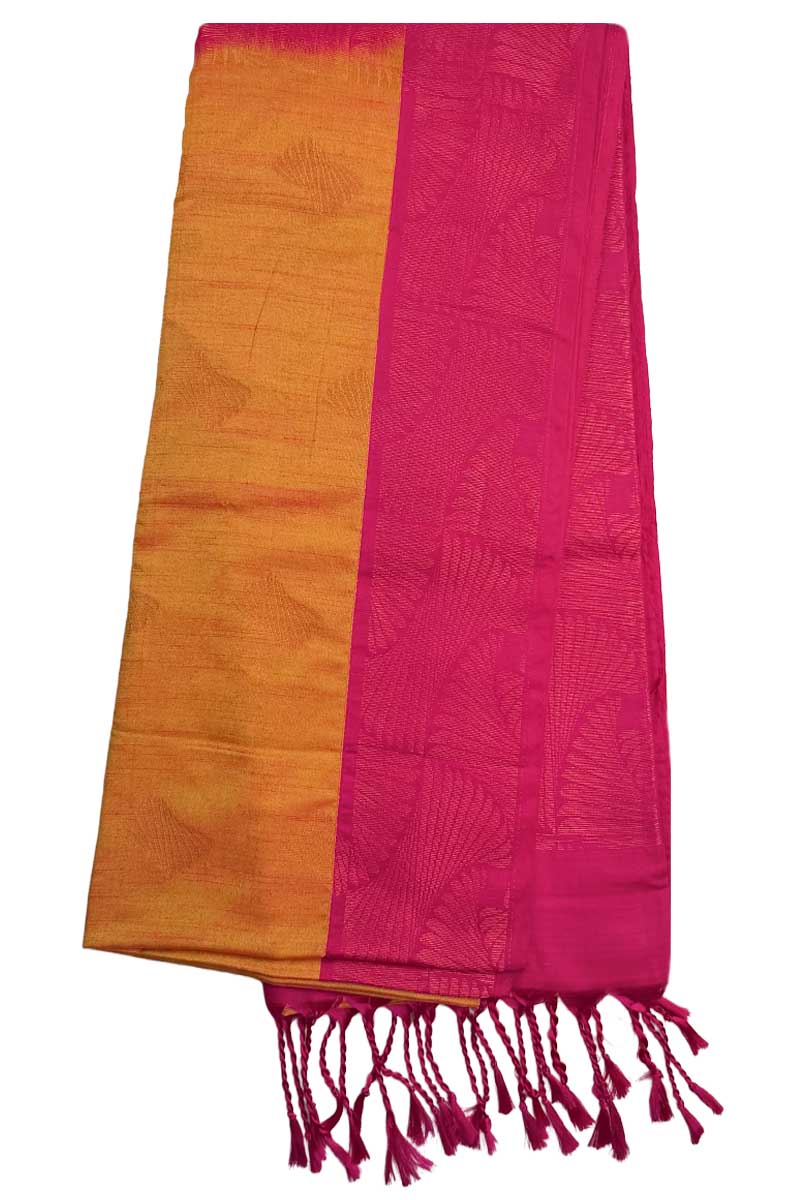 Jute Silk Mix Saree With Fancy Border | Happy Orange + Fuschia