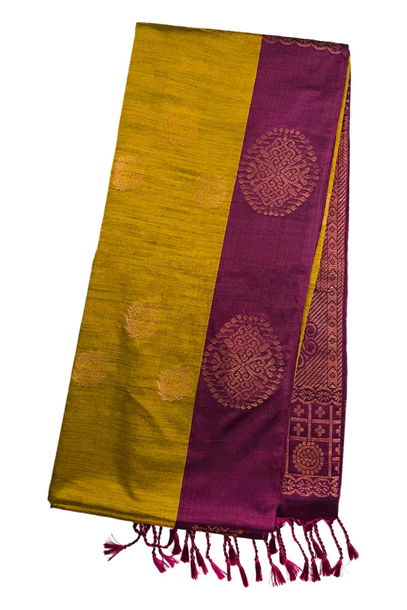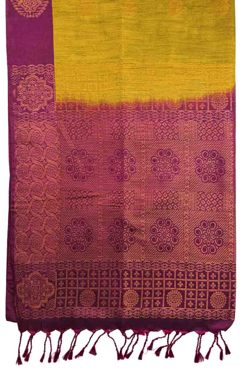 Jute Silk Mix Saree With Fancy Border | Mustard Yellow + Orchid Purple