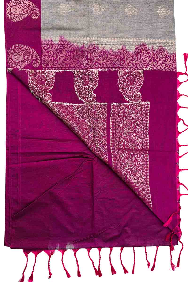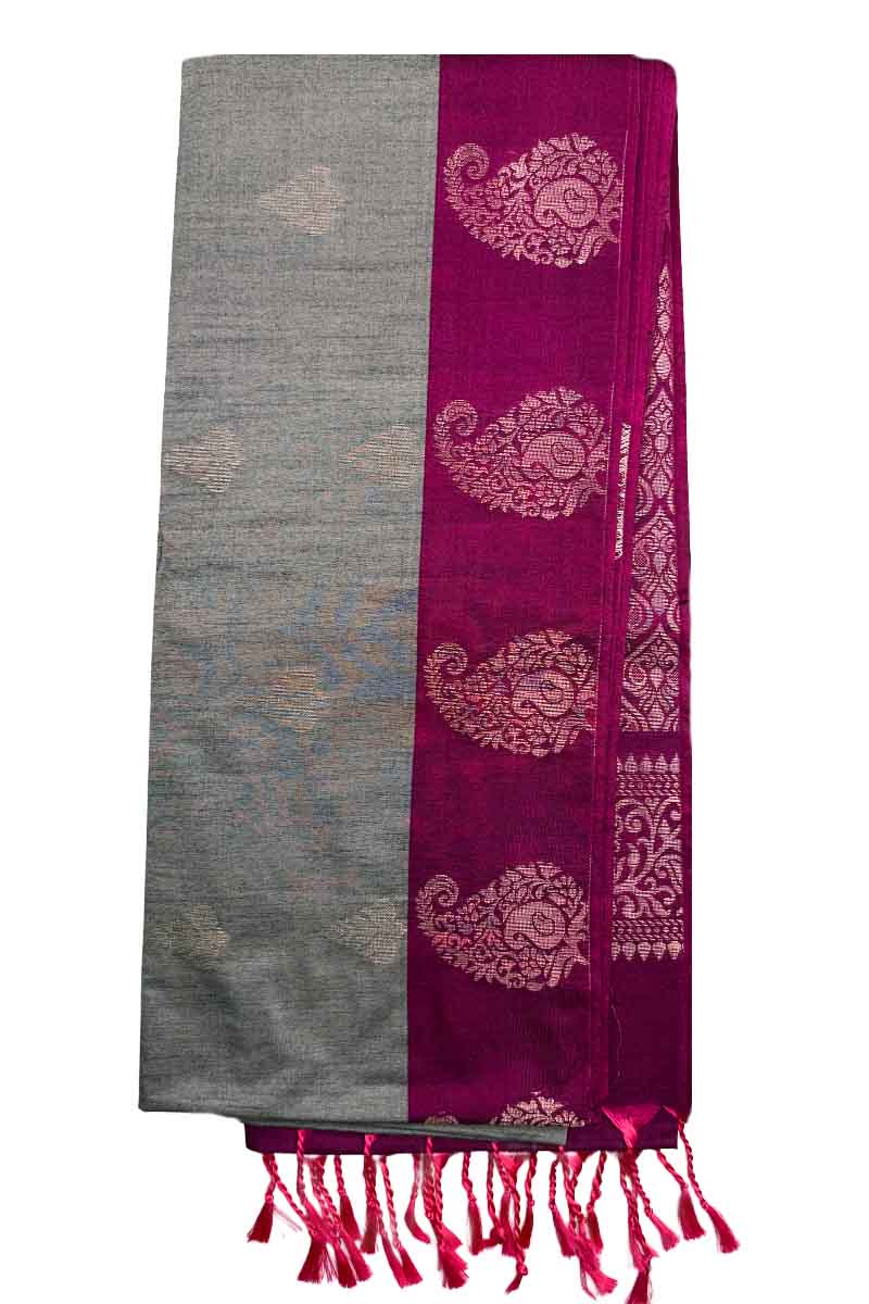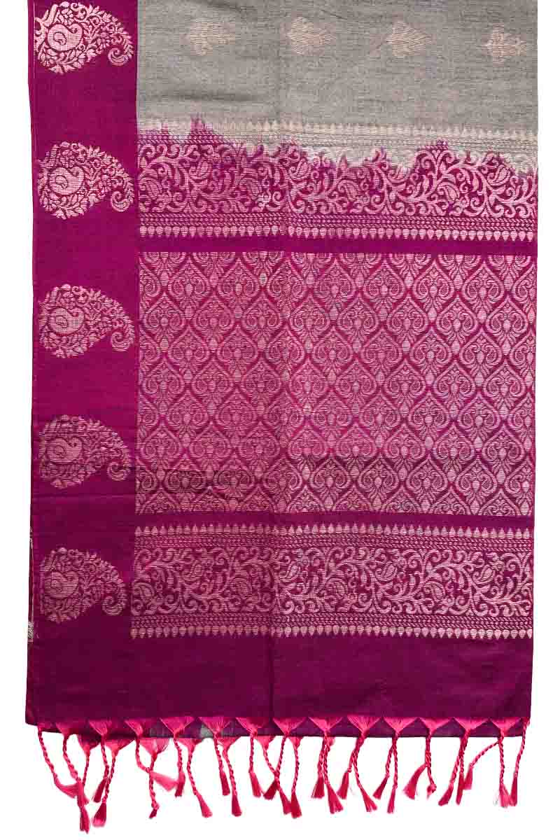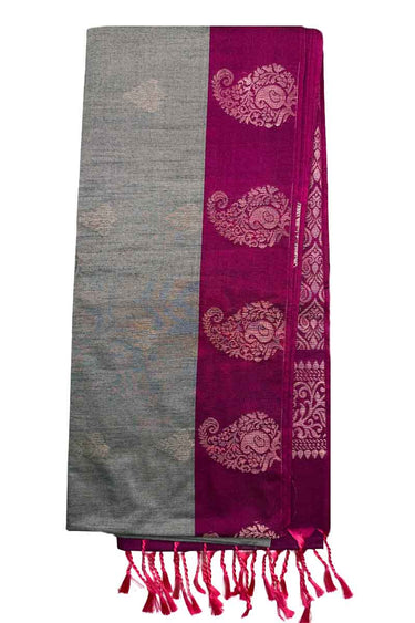 Jute Silk Mix Saree With Fancy Border | Soft Gray + Orchid Purple