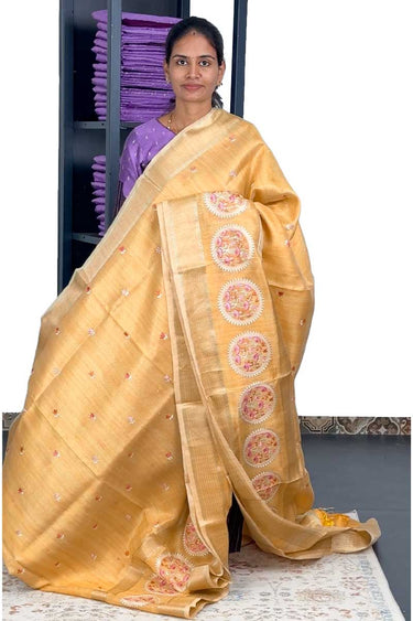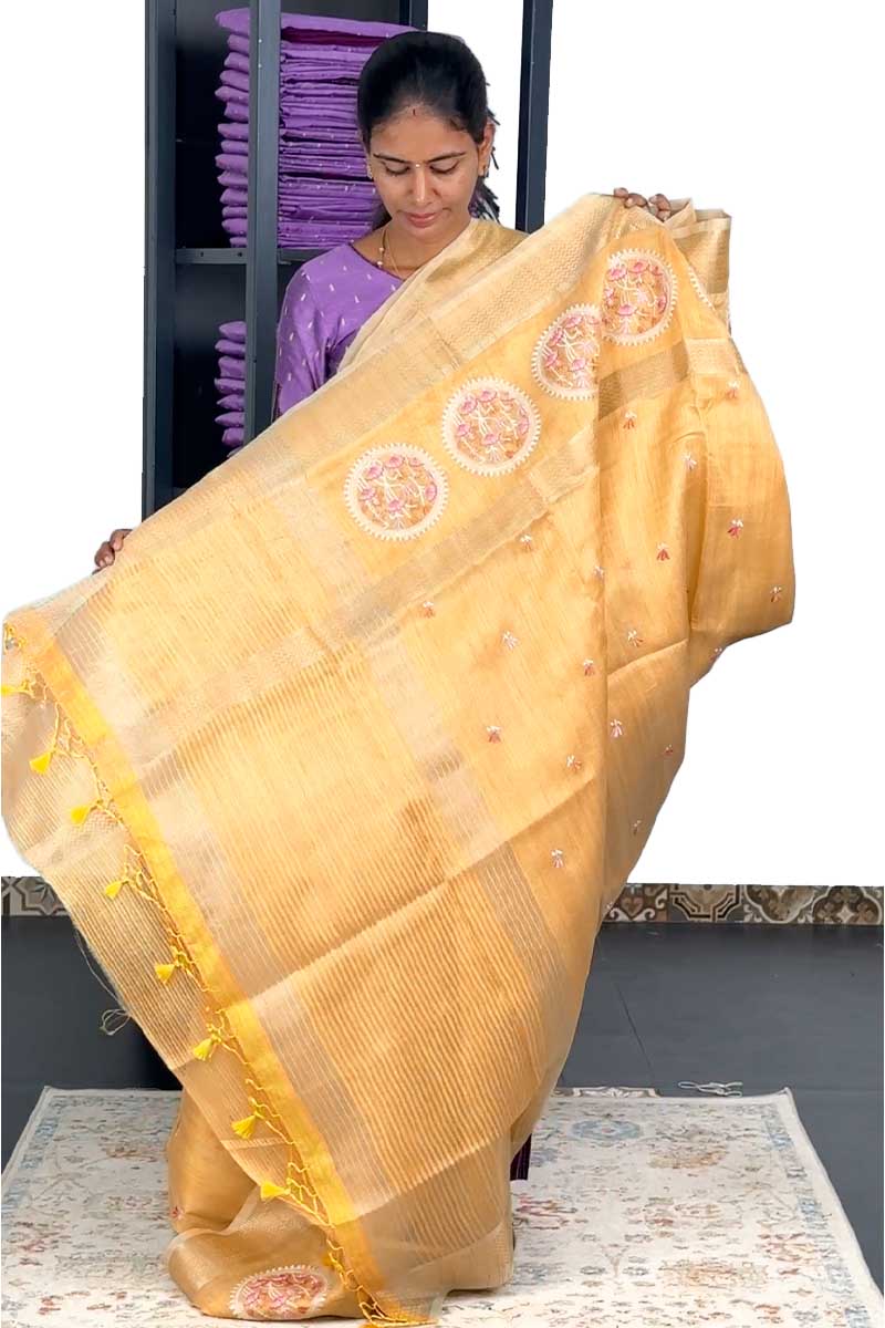 Jute Silk Saree With Embroidery Design | Honey Yellow