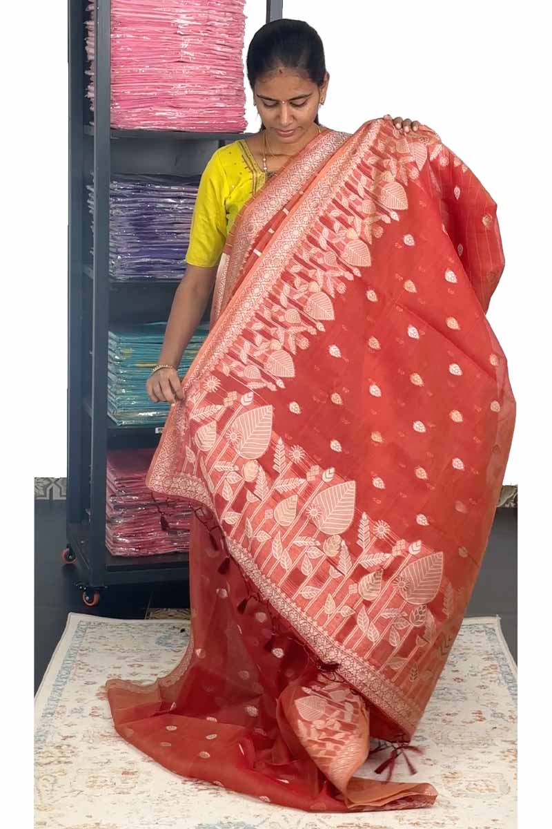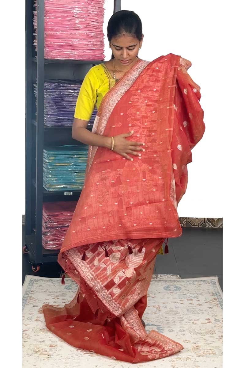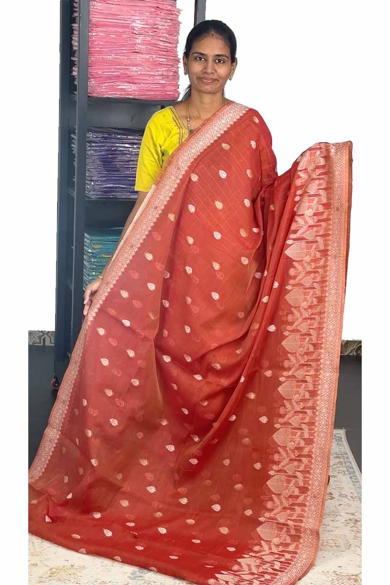 Munga Cotton Saree With Weaving Leaf Design| Tango