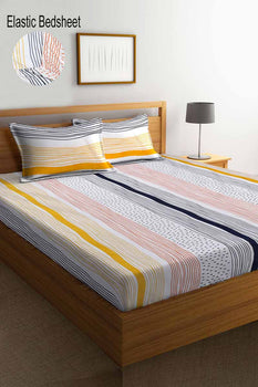 Elastic Bed Cover Set with 2 Pillow Covers | Pure Cotton | Export Quality A-Grade | Light Gray