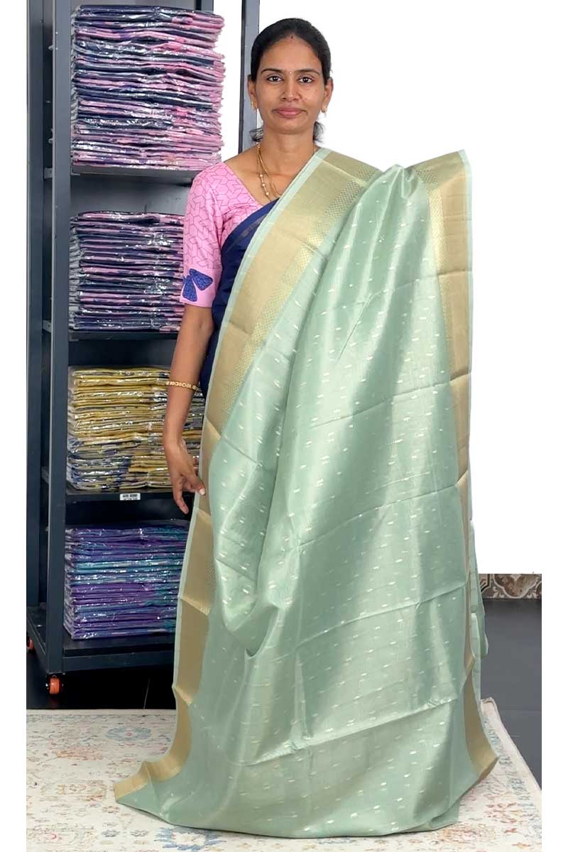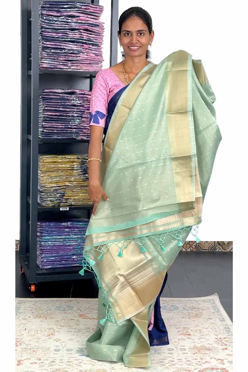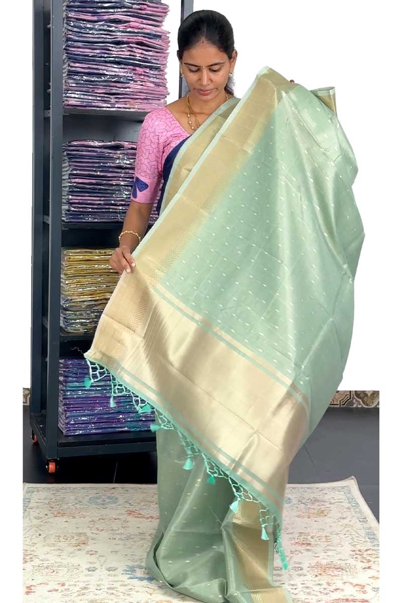 Linen Silk Saree with Zari Buttas | Sea Green