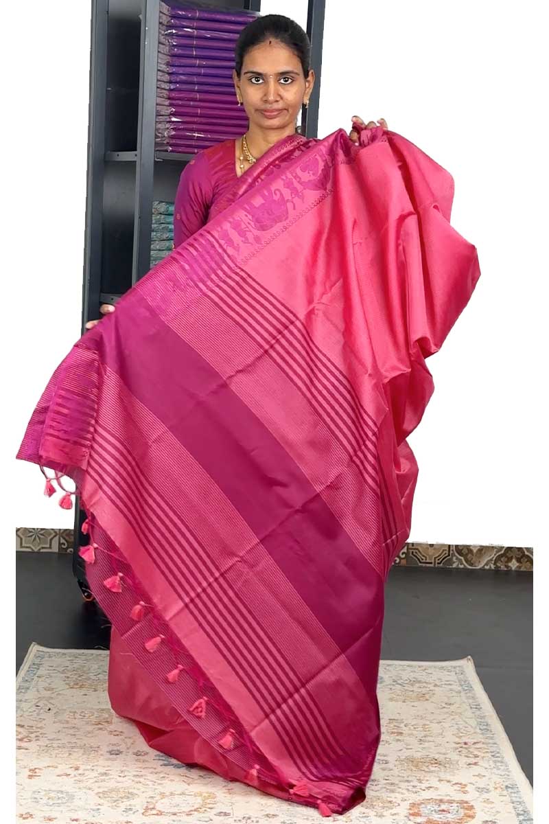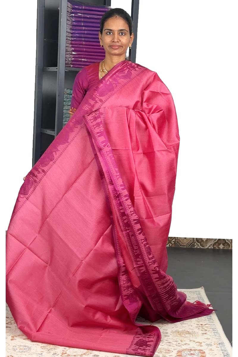 Raw Silk Sarees with Elephant Motif | Rose + Hot Pink