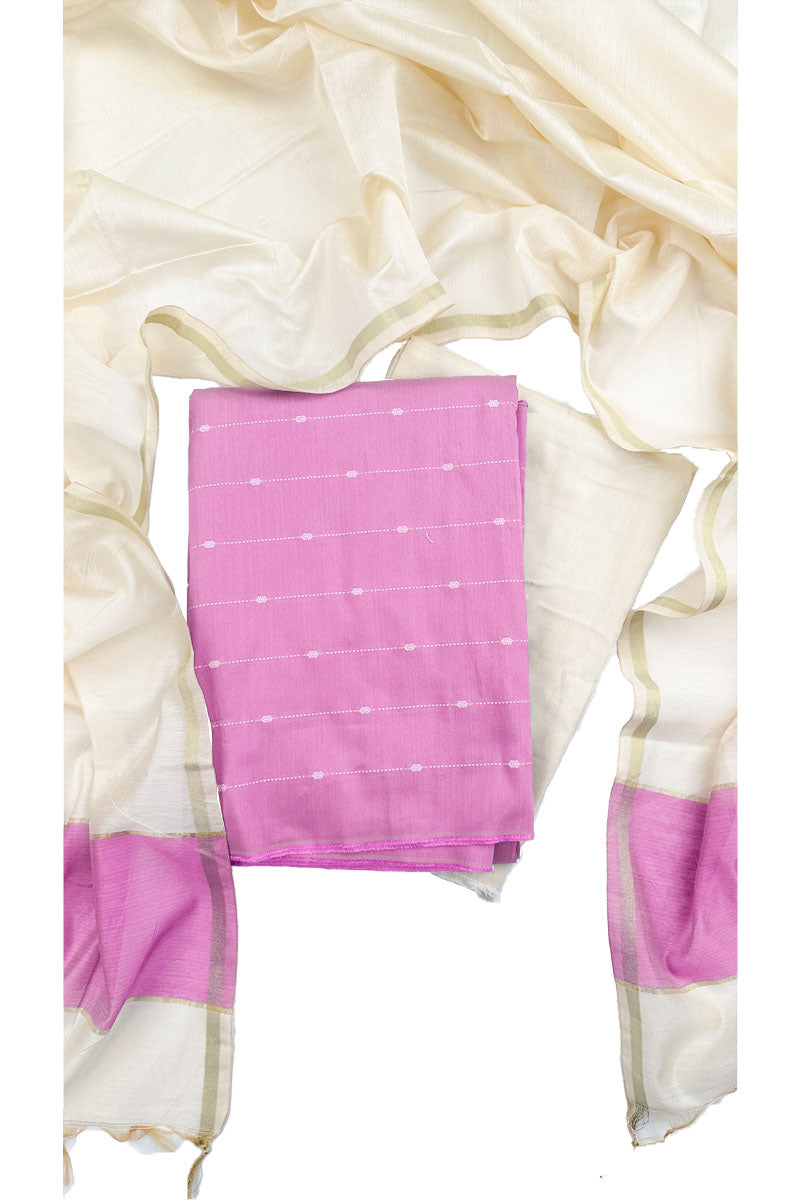 Unstitched Salwar Set - Cotton suit | Light Rose + Half White