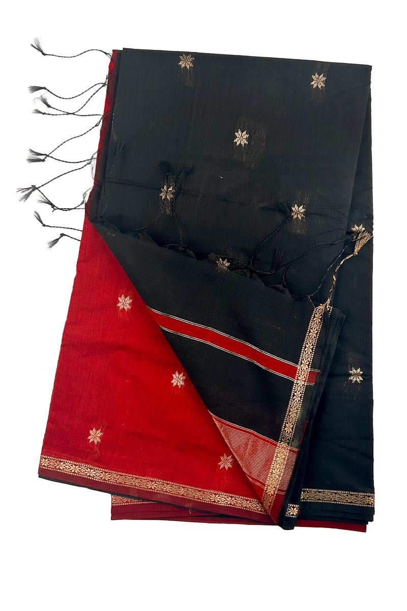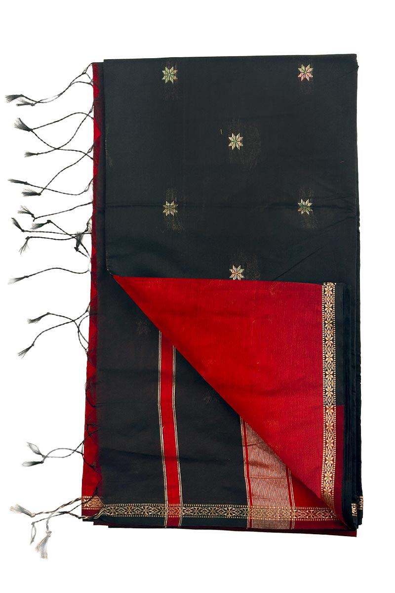 Maheswari Cotton with Small Butta | Black + Wine Red
