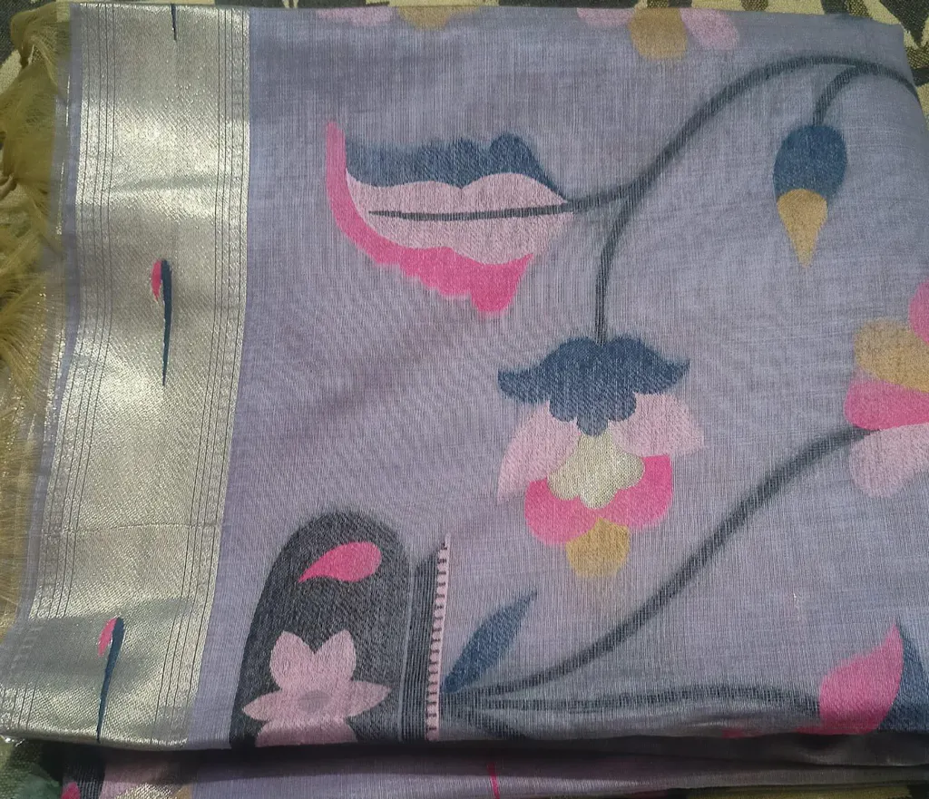 Munga Cotton Saree With Paithani Pattern| Lavender