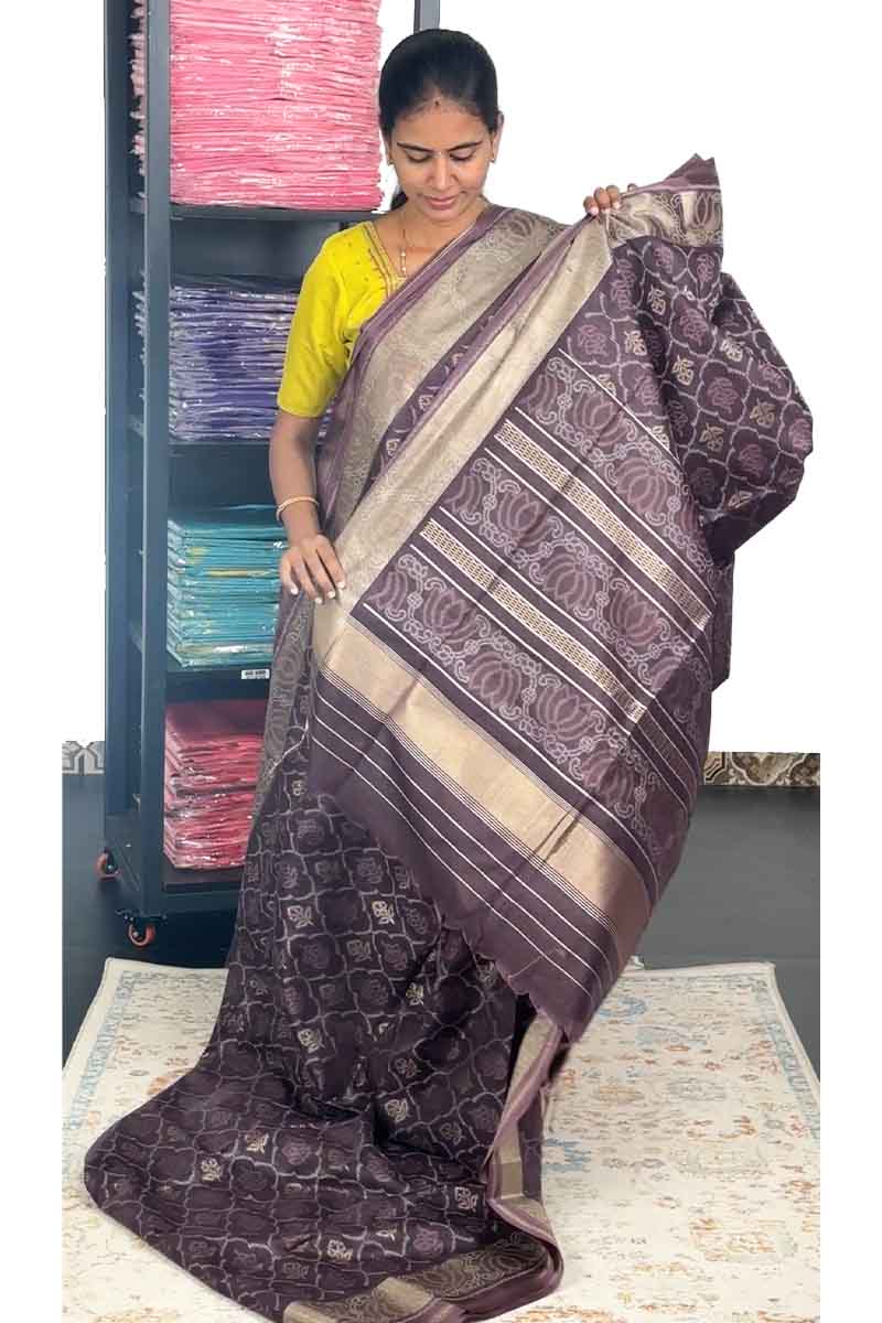 Patola Silk Saree With Ikat pattern | chocolate Brown