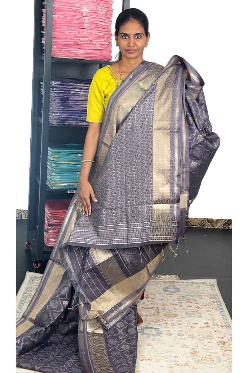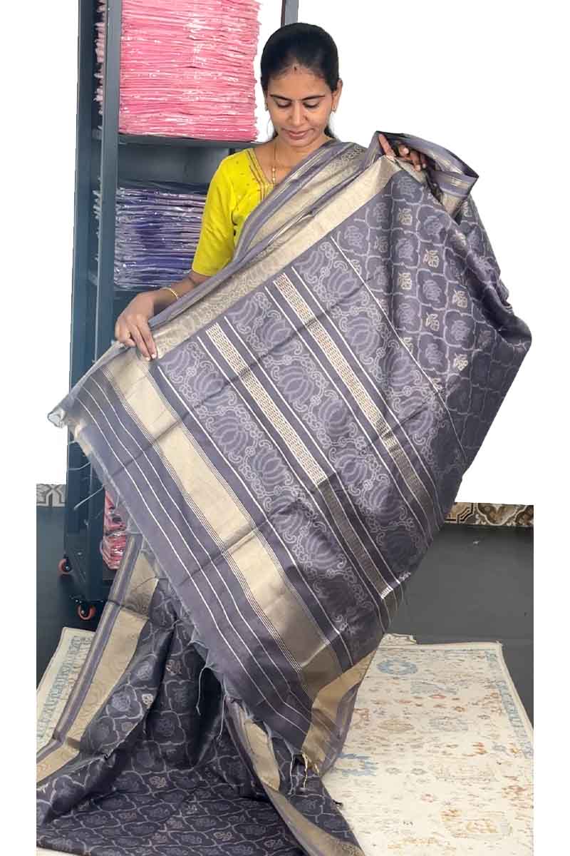 Patola Silk Saree With Ikat pattern | Fog Grey
