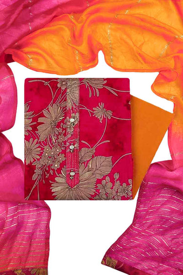 Here is our fuschia unstitched dress material, which has an ideal fresh look.