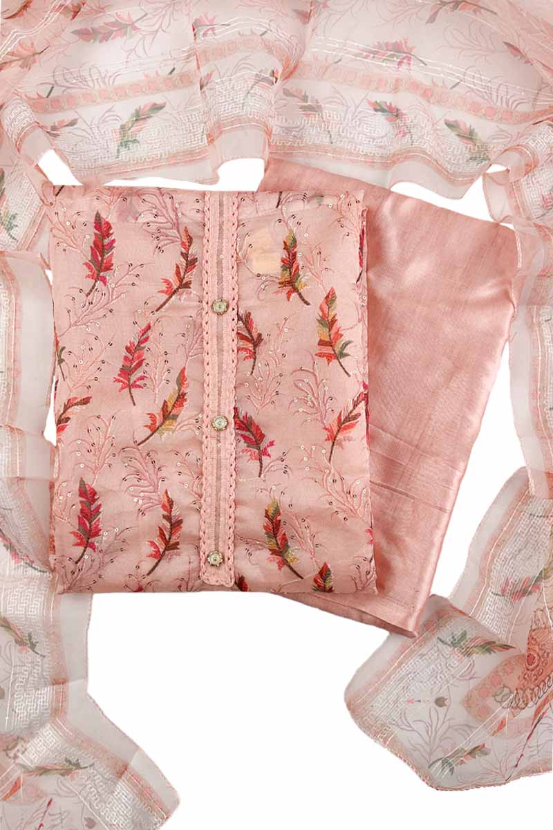 Here is our peach colour unstitched dress material, which has an ideal fresh look.