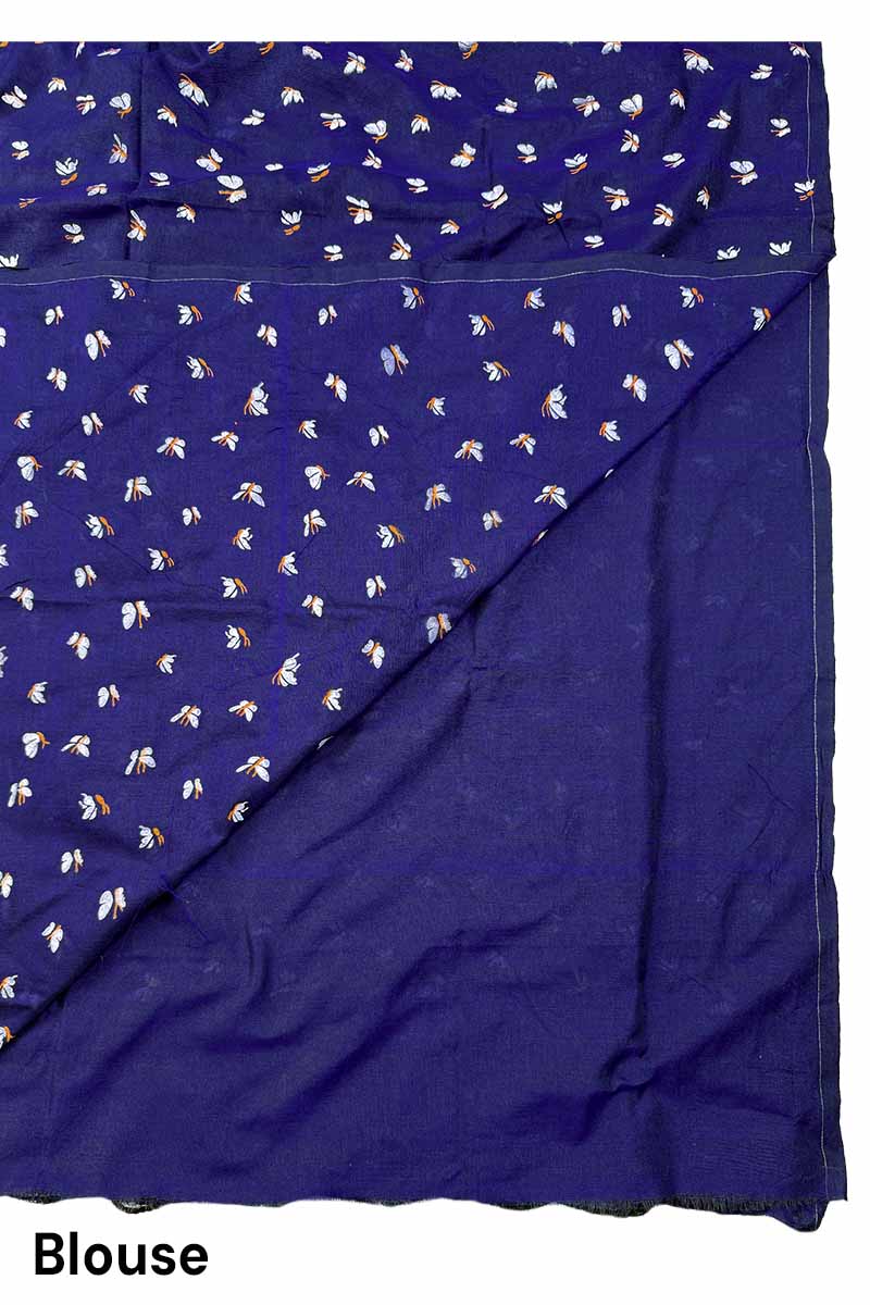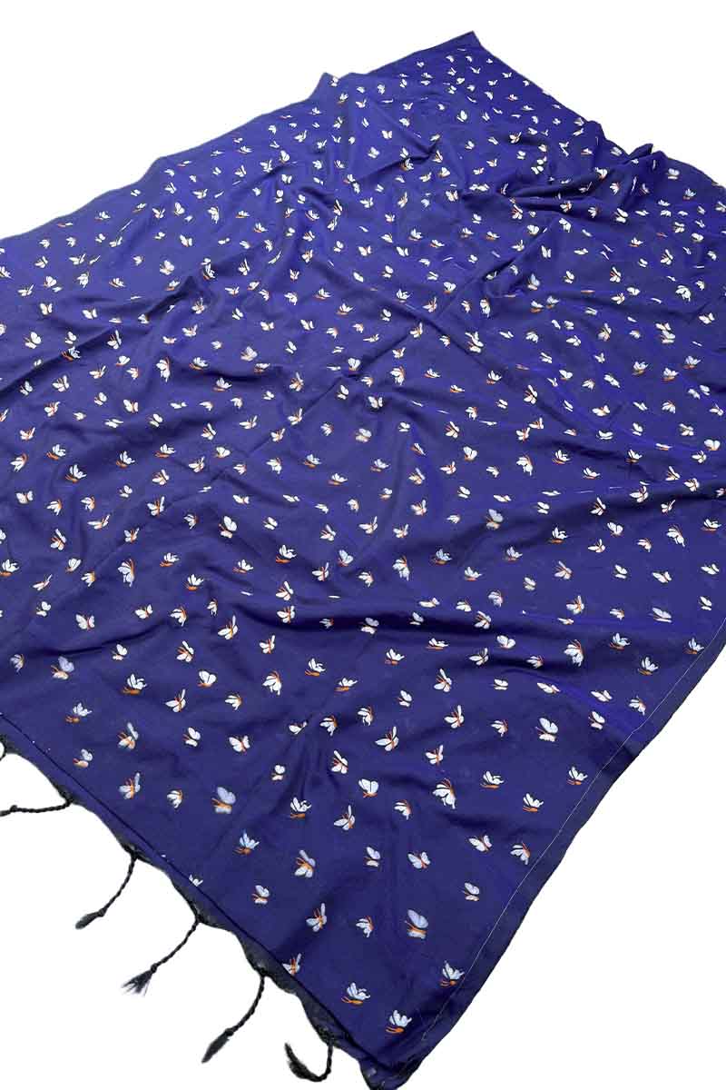 Khadi Cotton Saree With Butterfly Hand Painted Design | Blue Violet