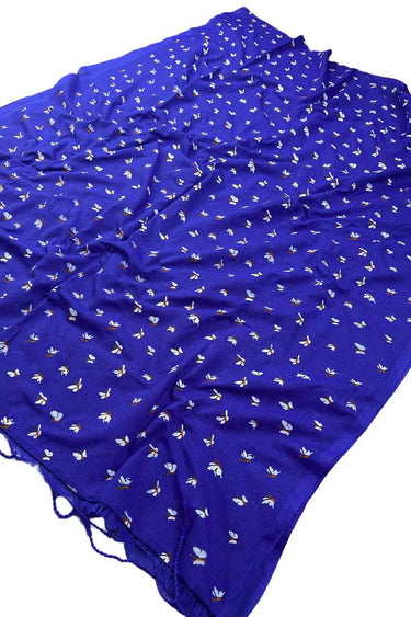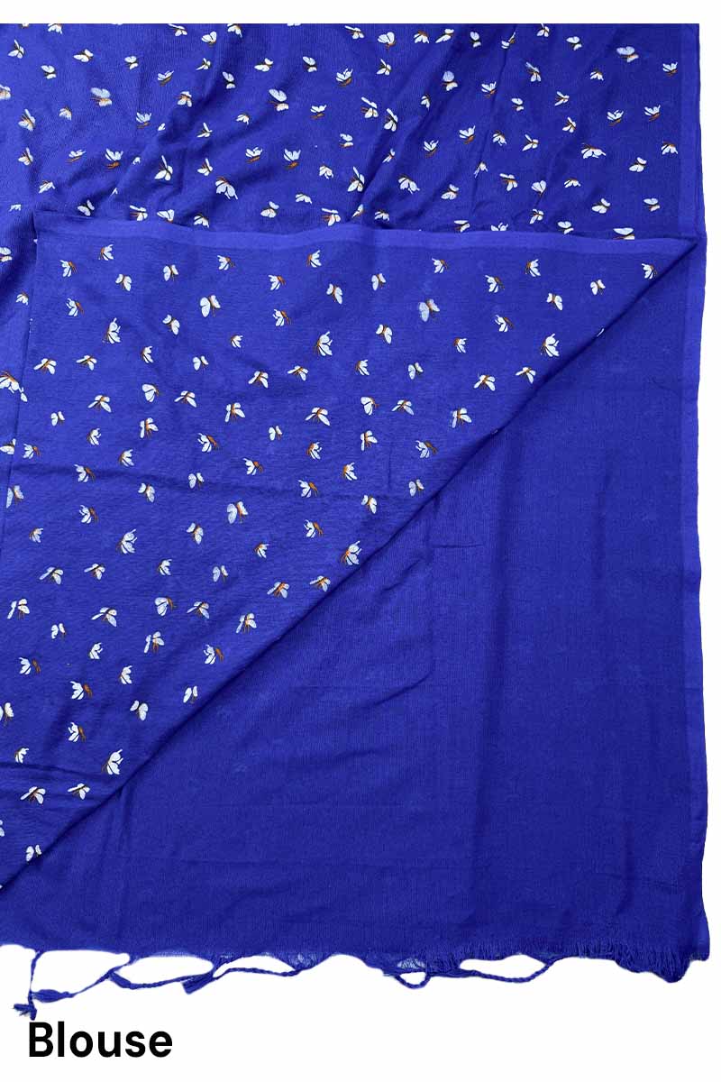 Khadi Cotton Saree With Butterfly Hand Painted Design | Royal Blue