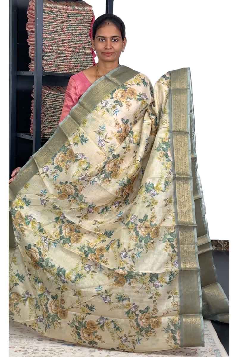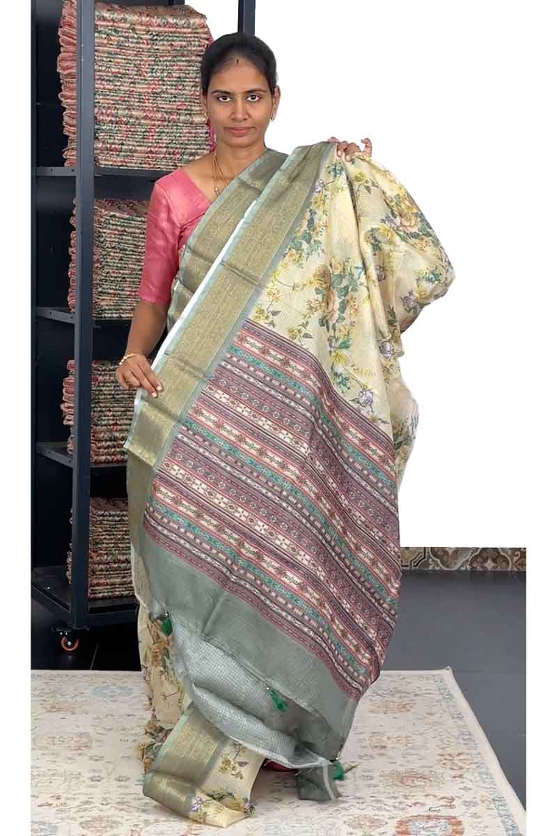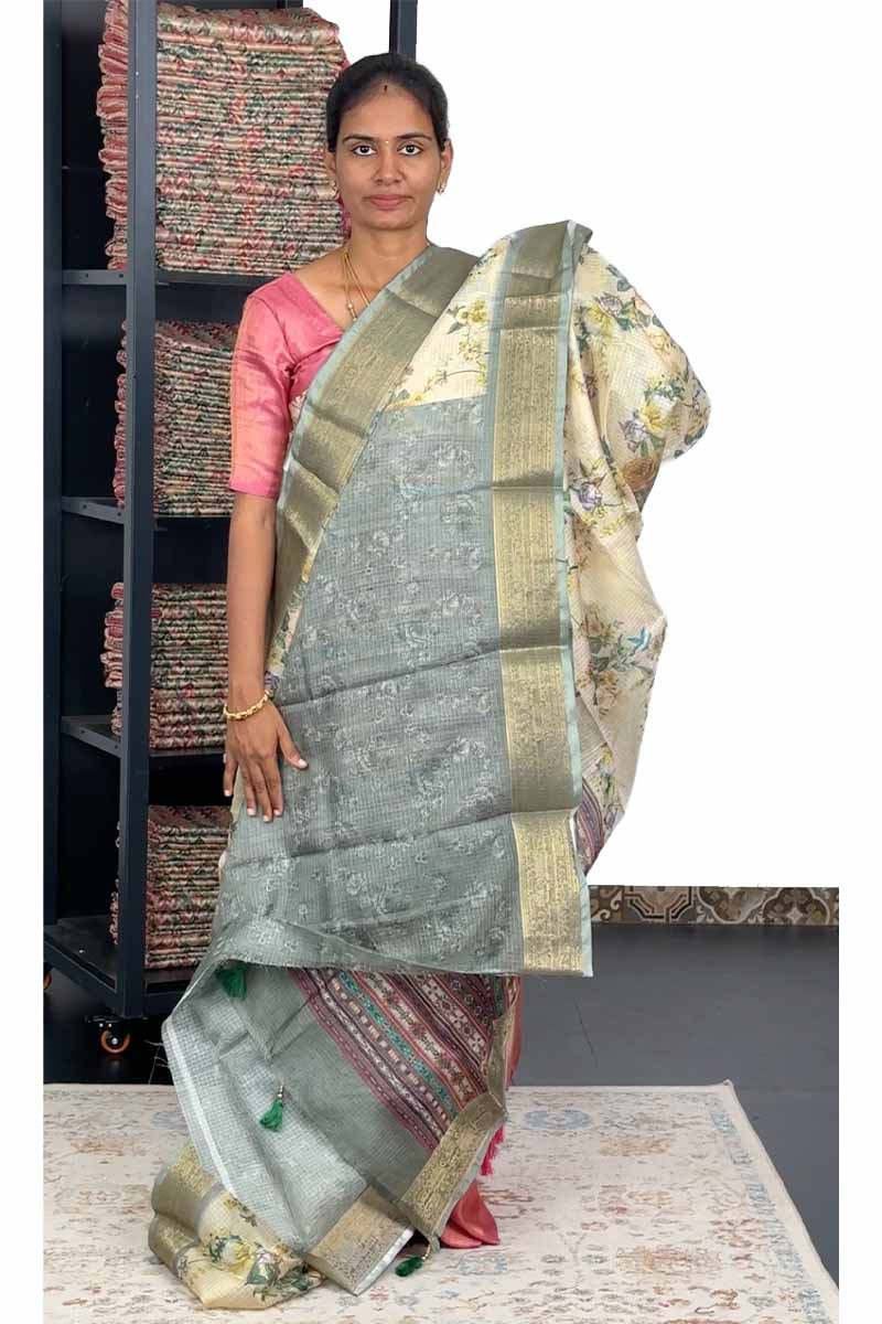 Kota Saree with Floral design | Pastel Light Green