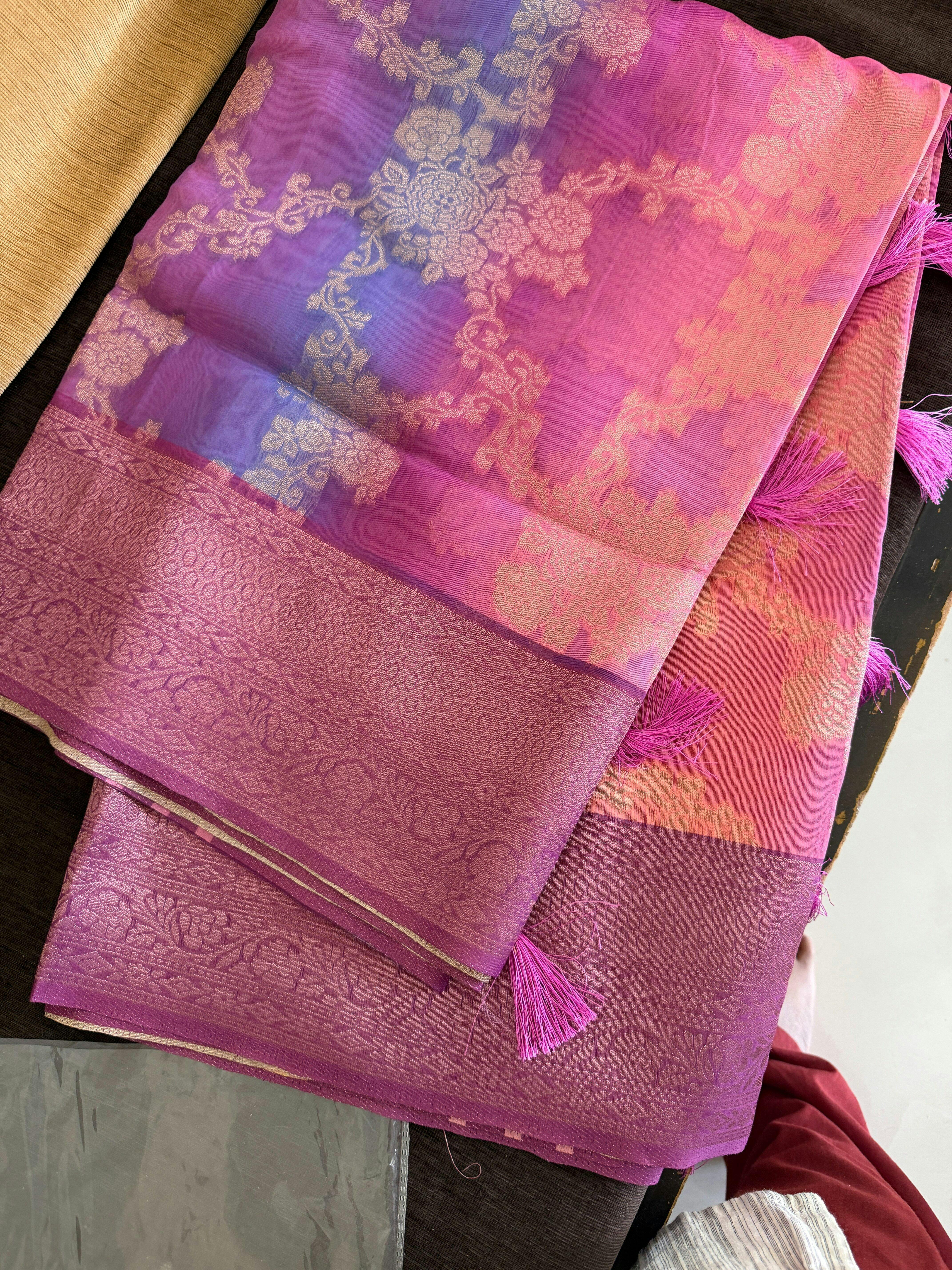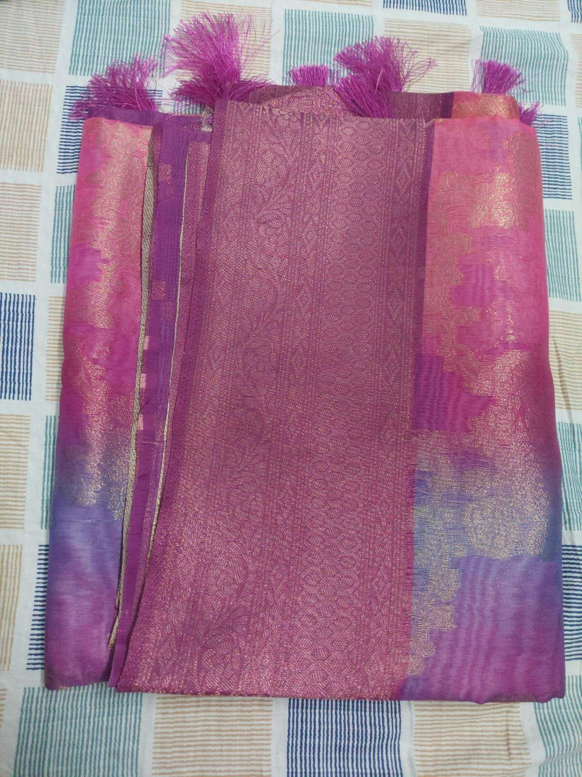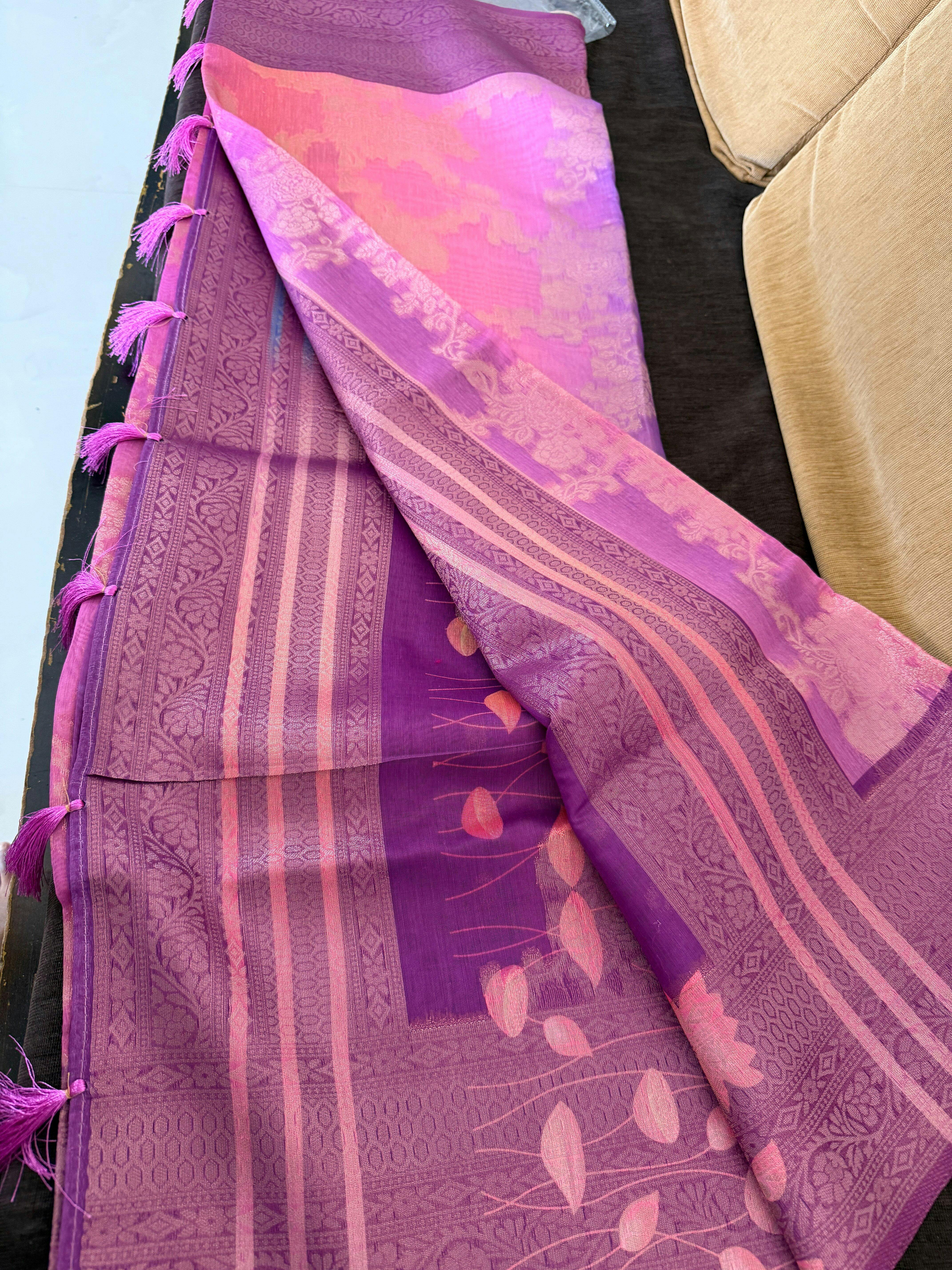 Banarasi Linen Saree in Melting Tones | Fruity Plum + Watermelon Pink | Menmai Exclusive Saree 👑