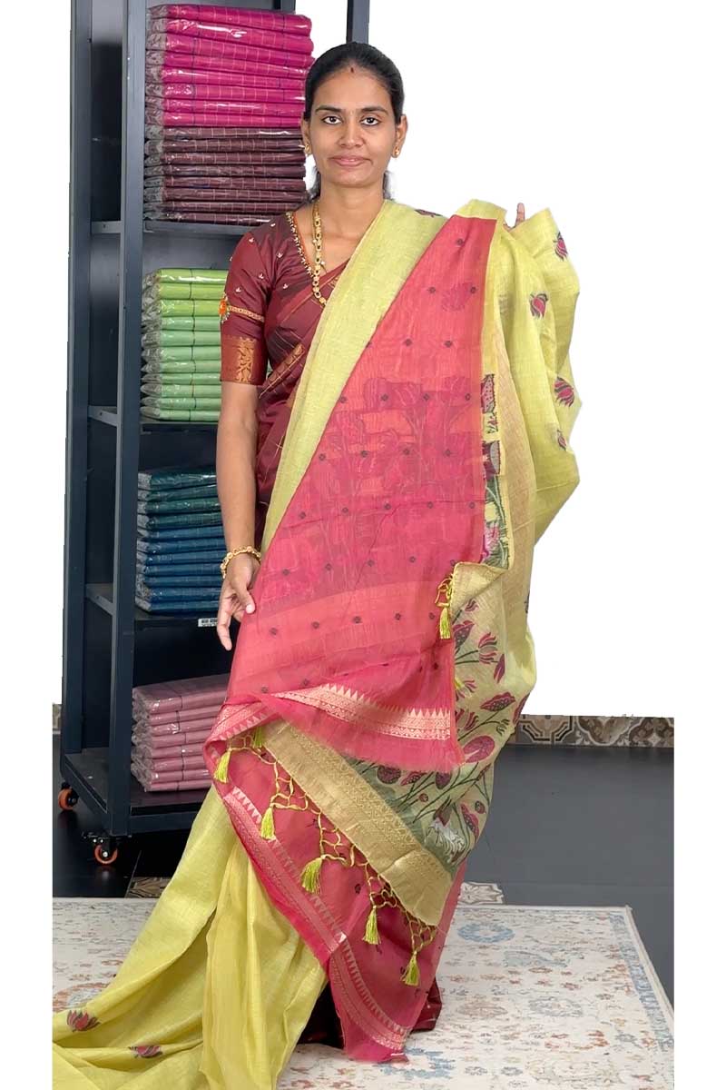 This saree is perfect for festive occasions, intimate gatherings, or daily elegance. Drape it, feel the finesse, and own your unique style with Menmai Fabrics.