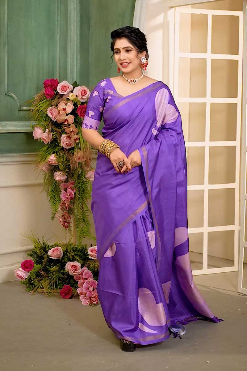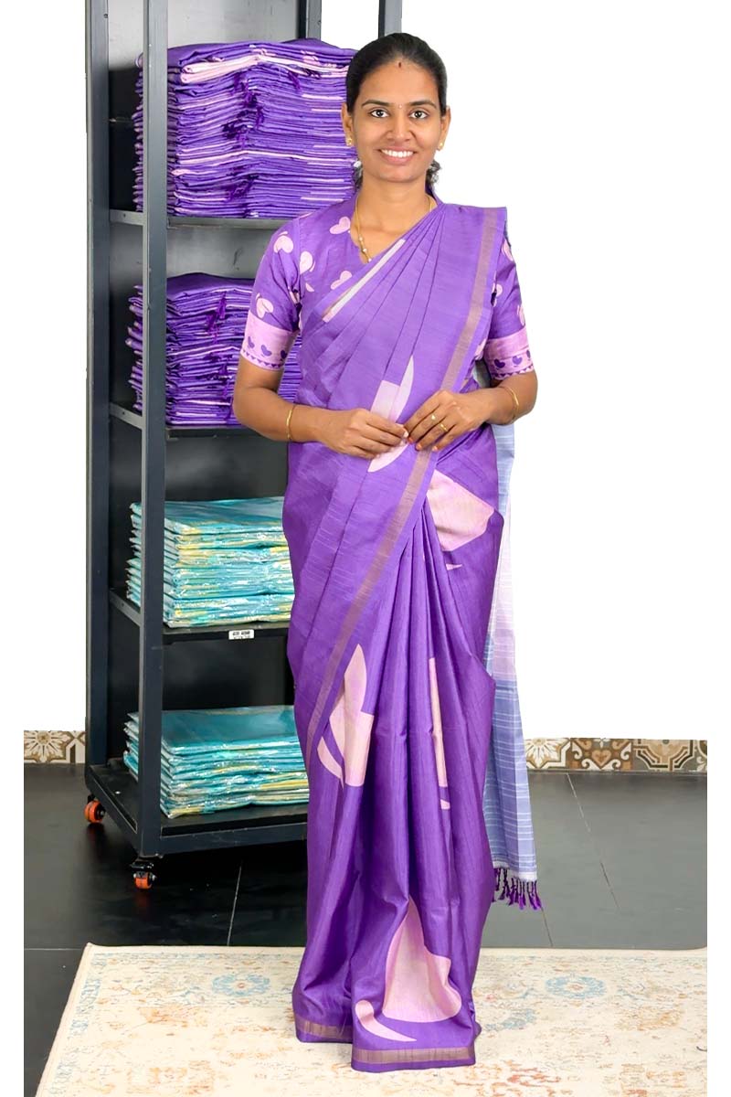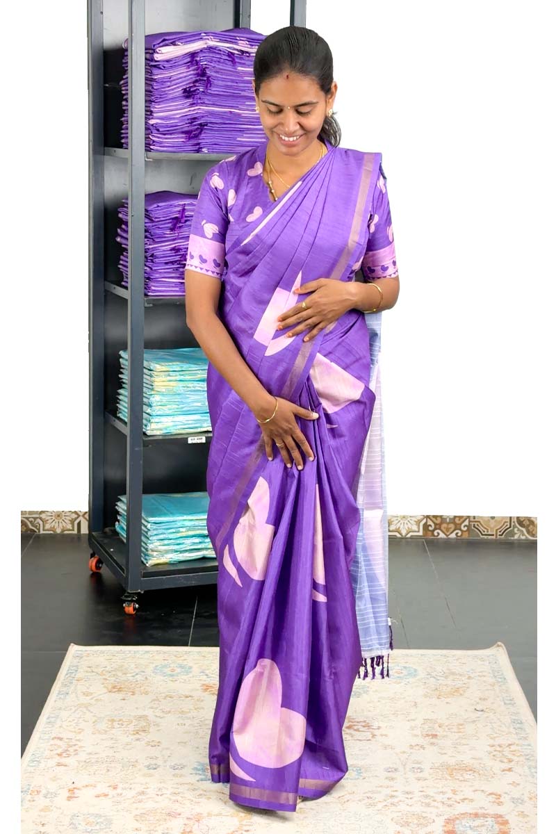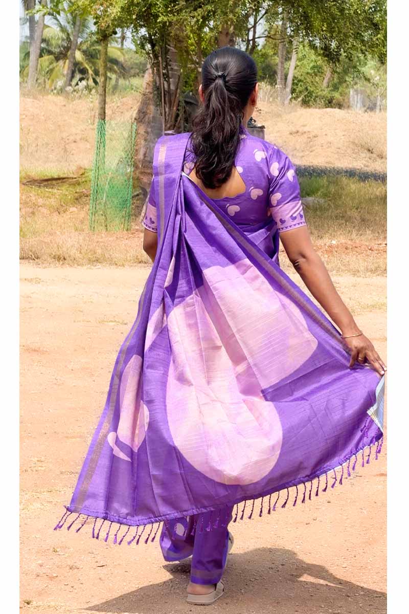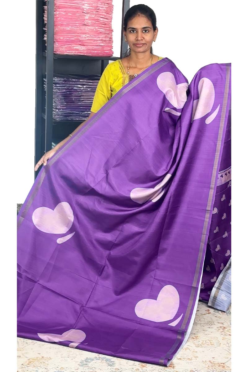 ๐ŸŒŸSoft Semi Tussar Silk Saree With Heart Design| Menmai Exclusive ๐Ÿ‘‘|Purple - Pastel Pink
