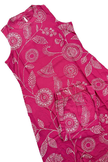 Viscose Co-ord Stitched Salwar Suit (Top & Bottom) | Hot Pink | Cap Sleeves attached