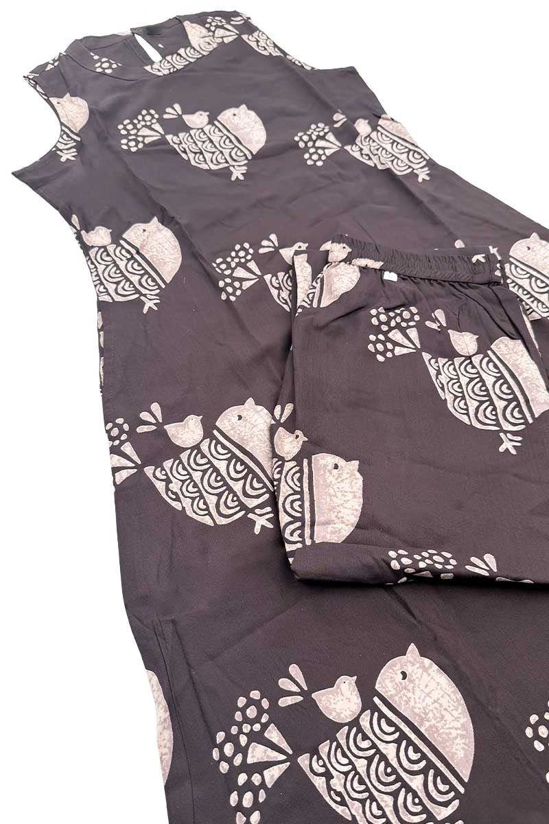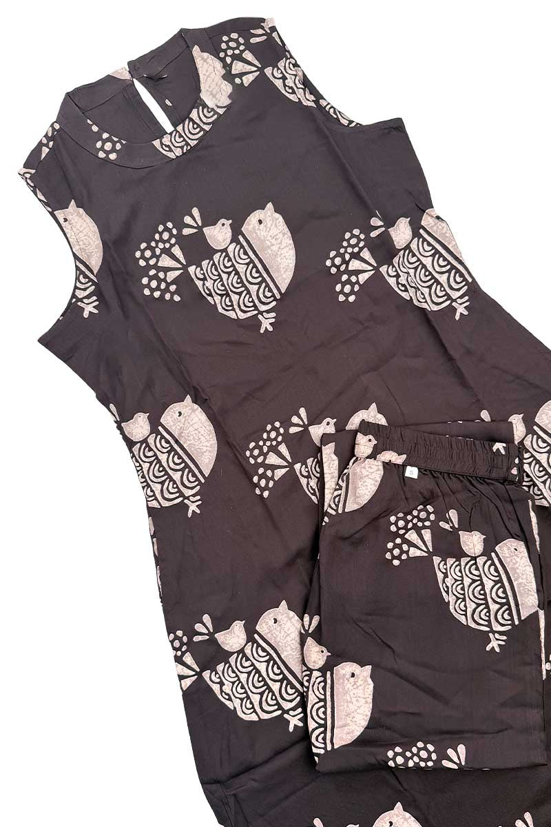 Viscose Co-ord Stitched Salwar Suit (Top & Bottom) | Chocolate Brown | Cap Sleeves attached
