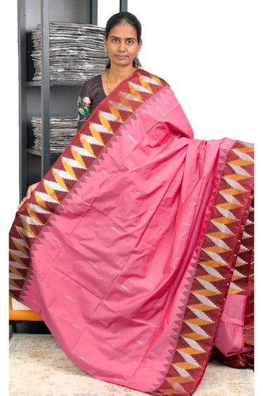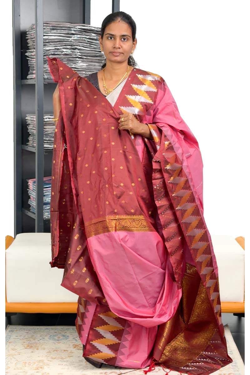 Semi Soft Silk Saree With Paithani Weaving | Sweet Pink + Maroon