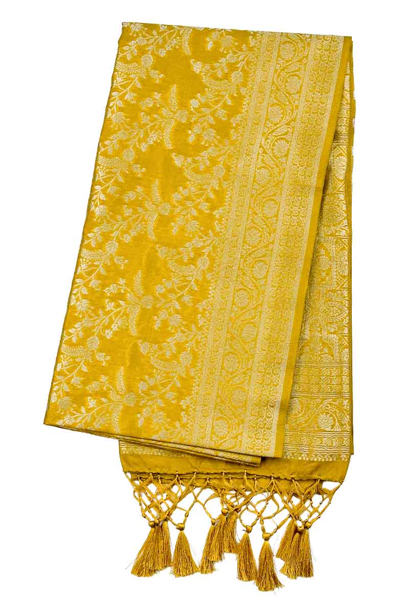 Banarasi Silk Saree With Silver zari | Lemon Yellow