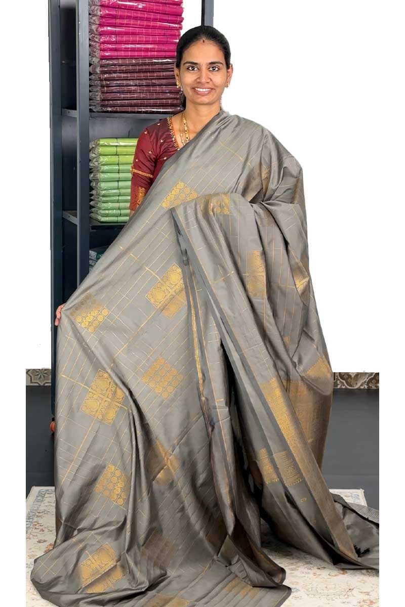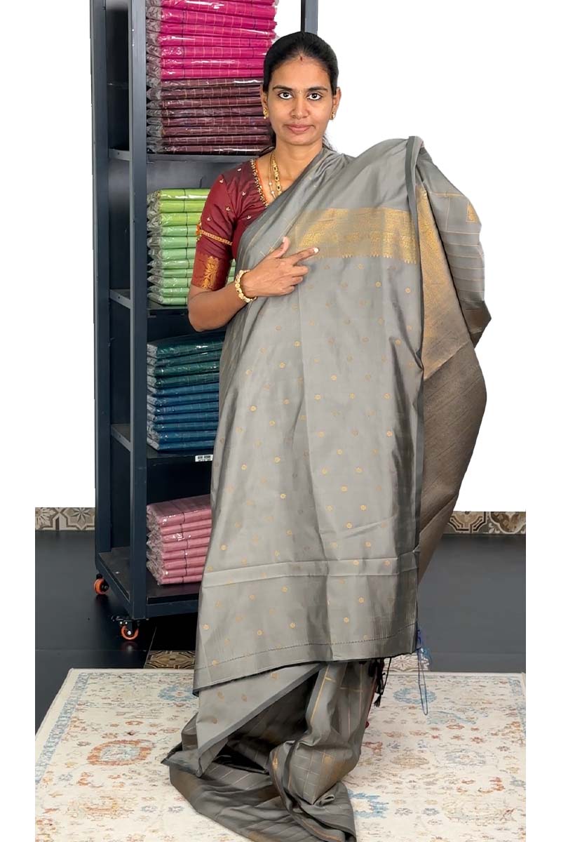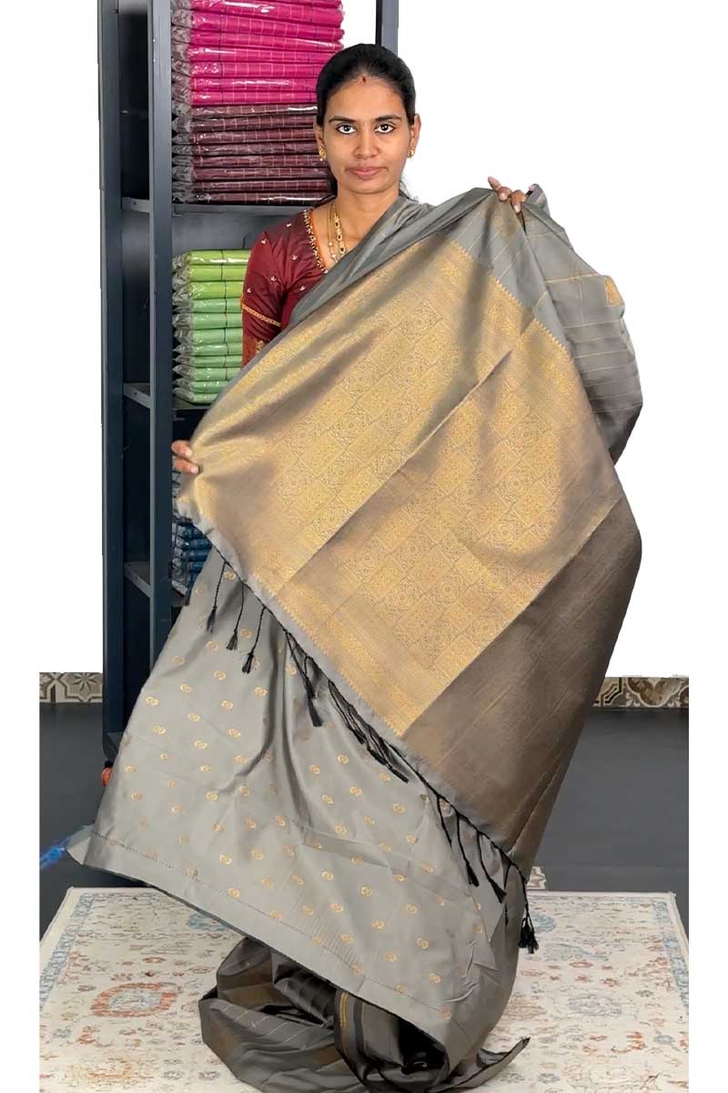 Kattam Semi Silk Saree With Annam And Rudraksha Butta Weaving | Soft Taupe