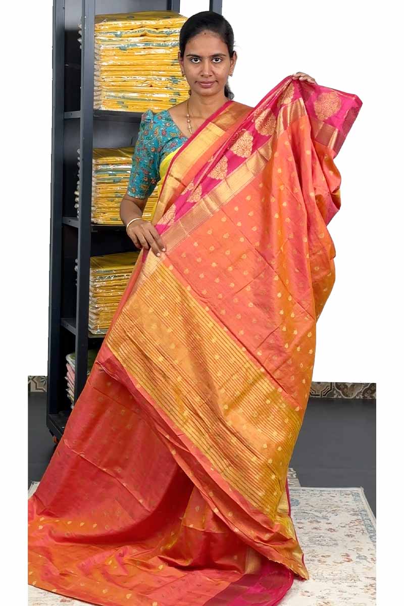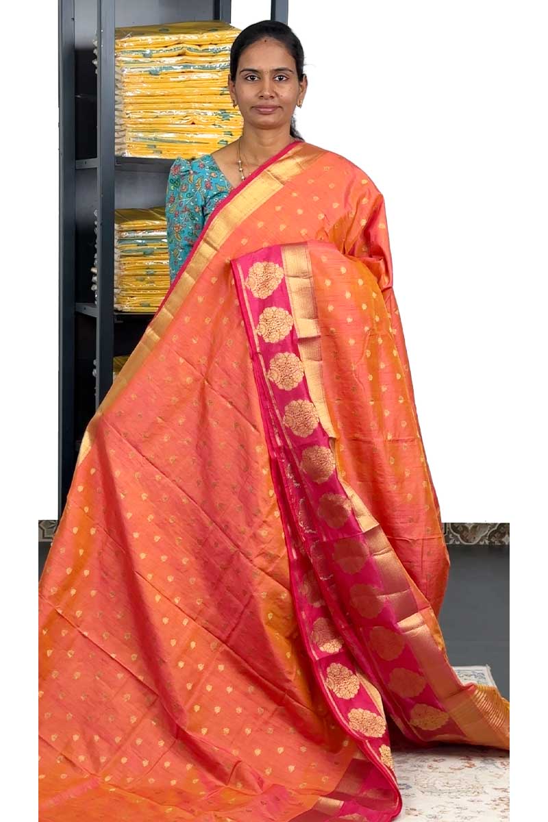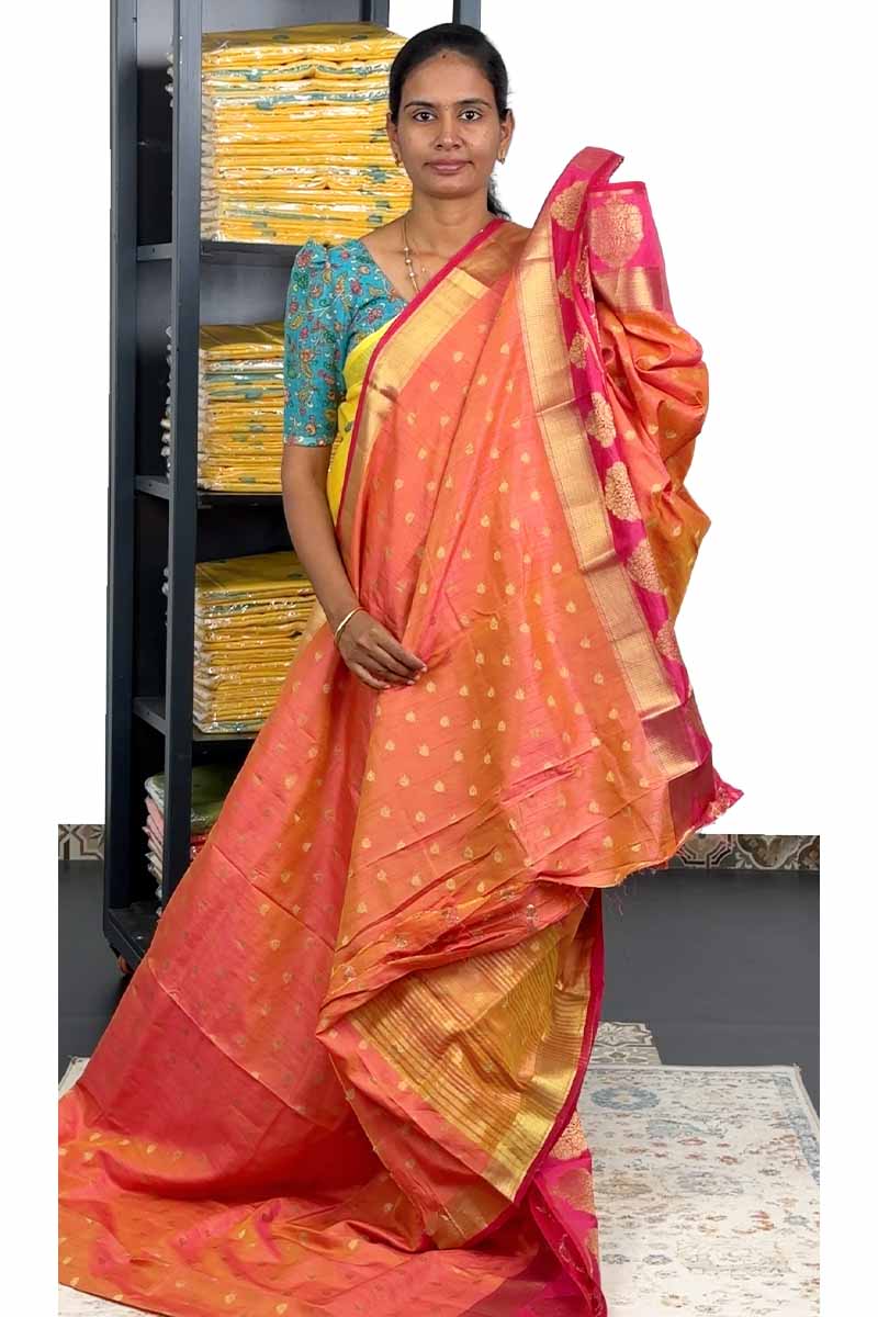 Raw Tussar Silk Saree With Dual shade | Coral Orange