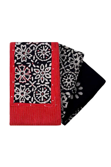 Batik Cotton Salwar Material (Top, Bottom & Dupatta) | Red + Black