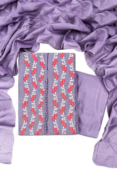 Chanderi Salwar Material With Embroidery Touch (Top, Bottom & Dupatta) | Plum