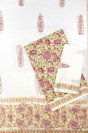 Cotton & Kota Salwar Material (Top, Bottom & Dupatta) | Pastel Yellow