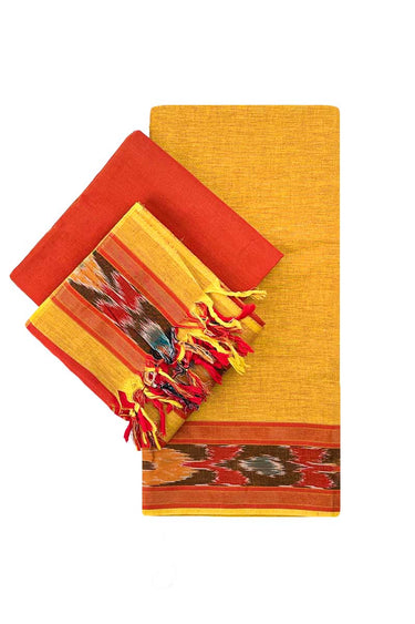 Pure Cotton Salwar Material (Top, Bottom & Dupatta) | Yellow + Tango