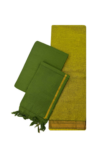 Soft Cotton Salwar Material (Top, Bottom & Dupatta) | Olive + Green