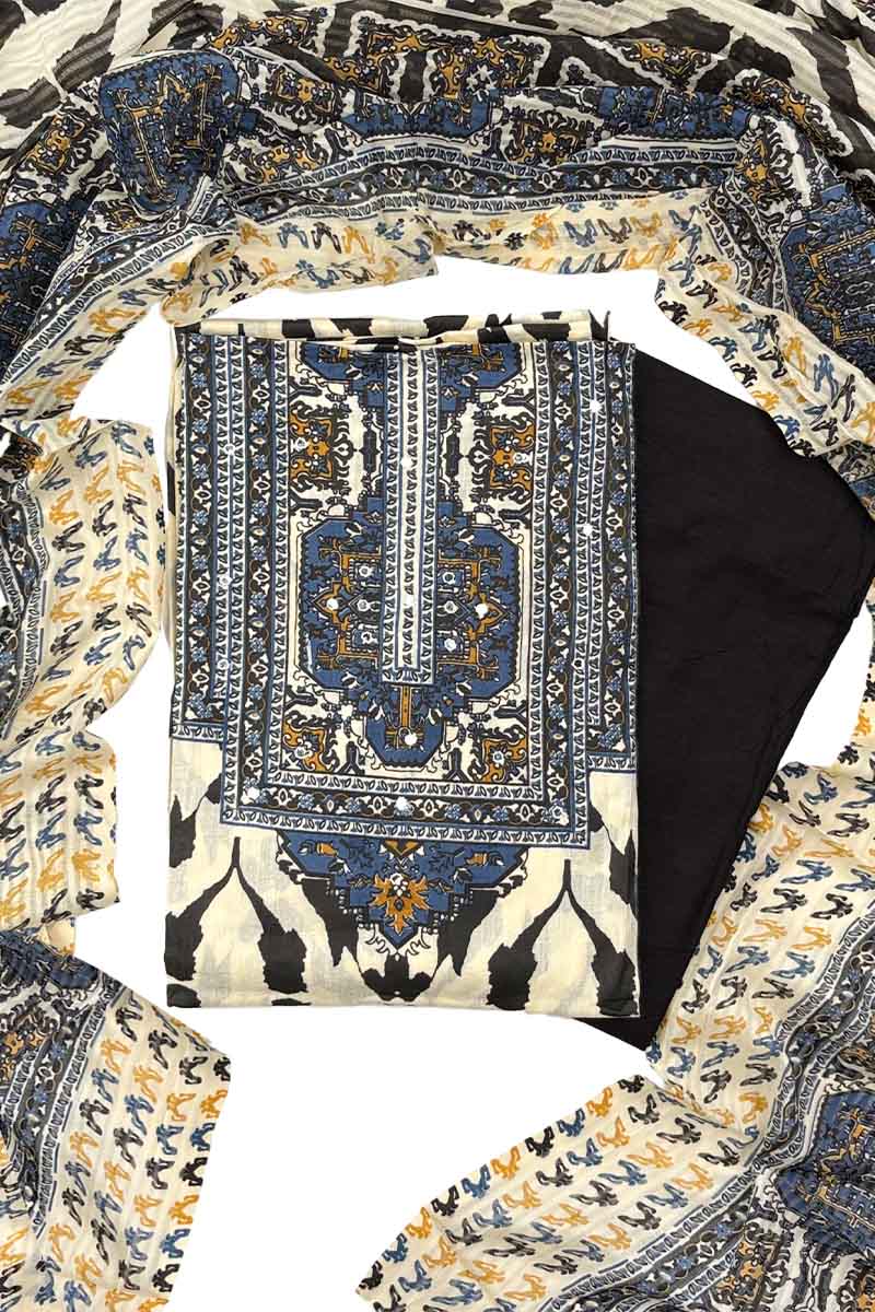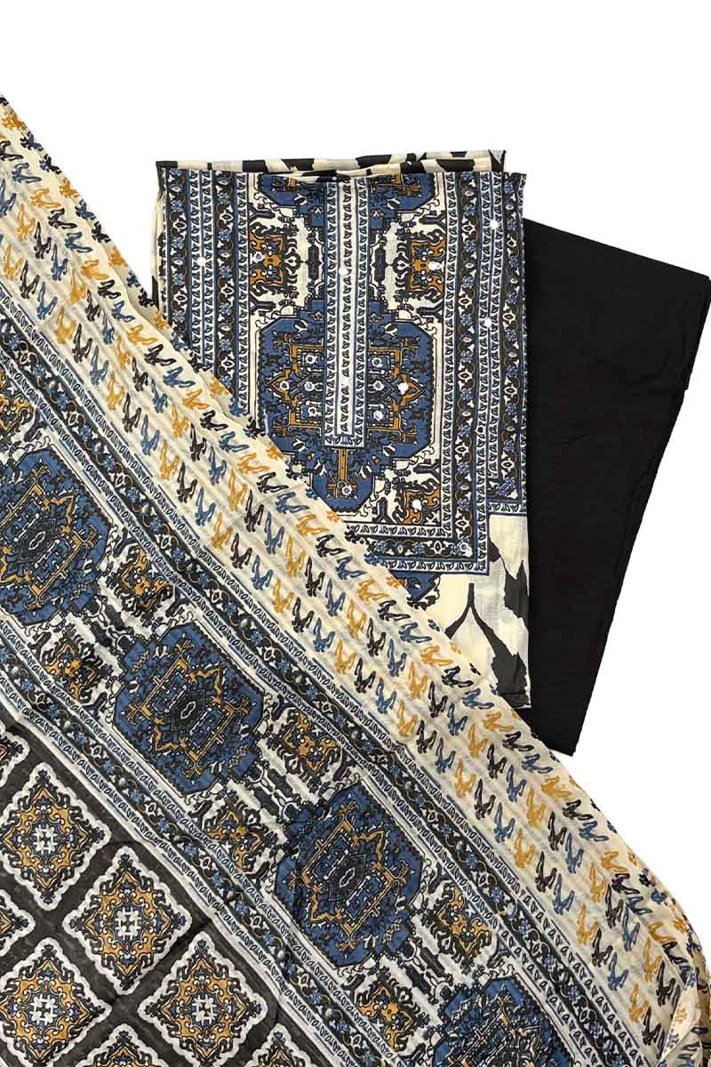 Summer Cool Cotton Salwar Material (Top, Bottom & Dupatta)| Half White + Black