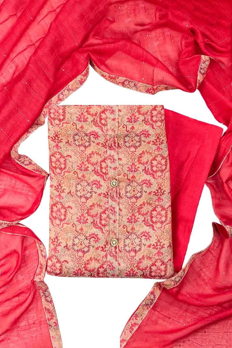 Tissue Linen Salwar Material (Top, Bottom & Dupatta) | Pretty Red