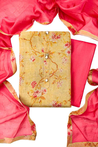 Tissue Linen Salwar Material (Top, Bottom & Dupatta) | Watermelon Pink