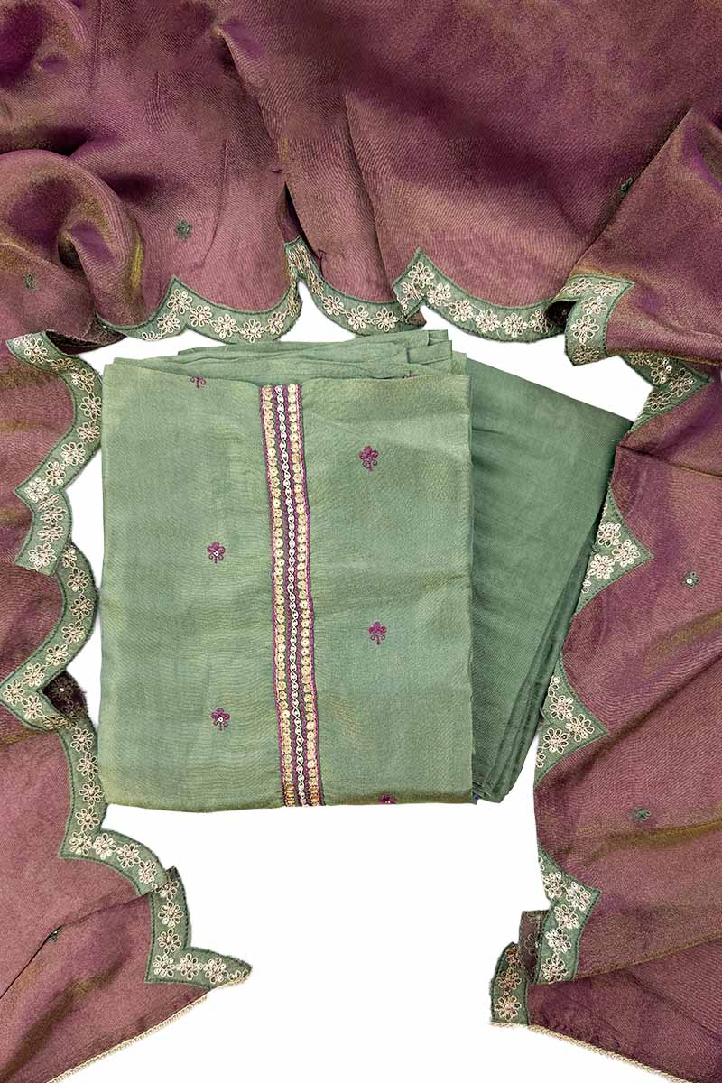 Banarasi Salwar Material (Top, Bottom & Dupatta) | Basil Green + Maroon