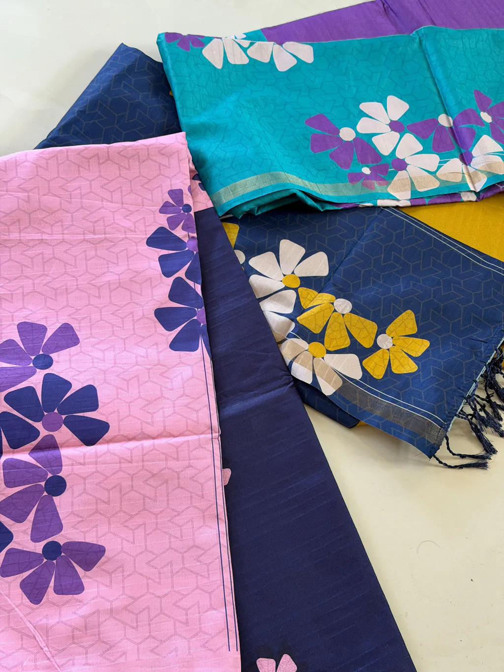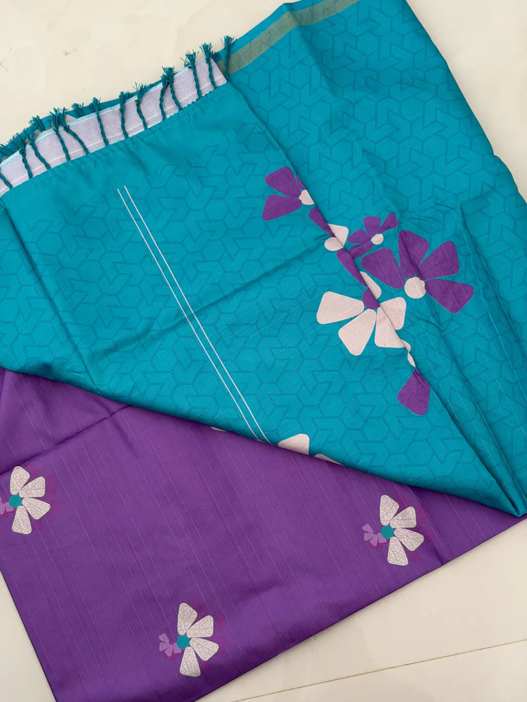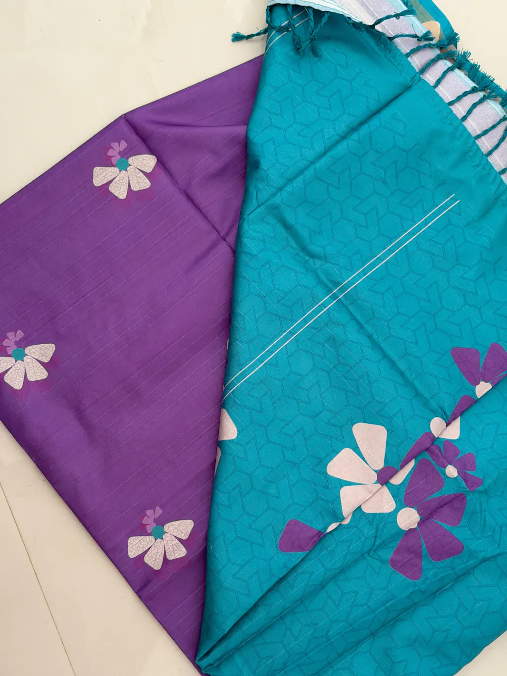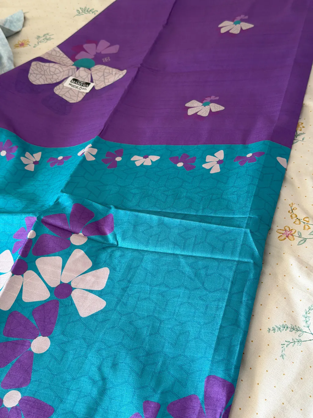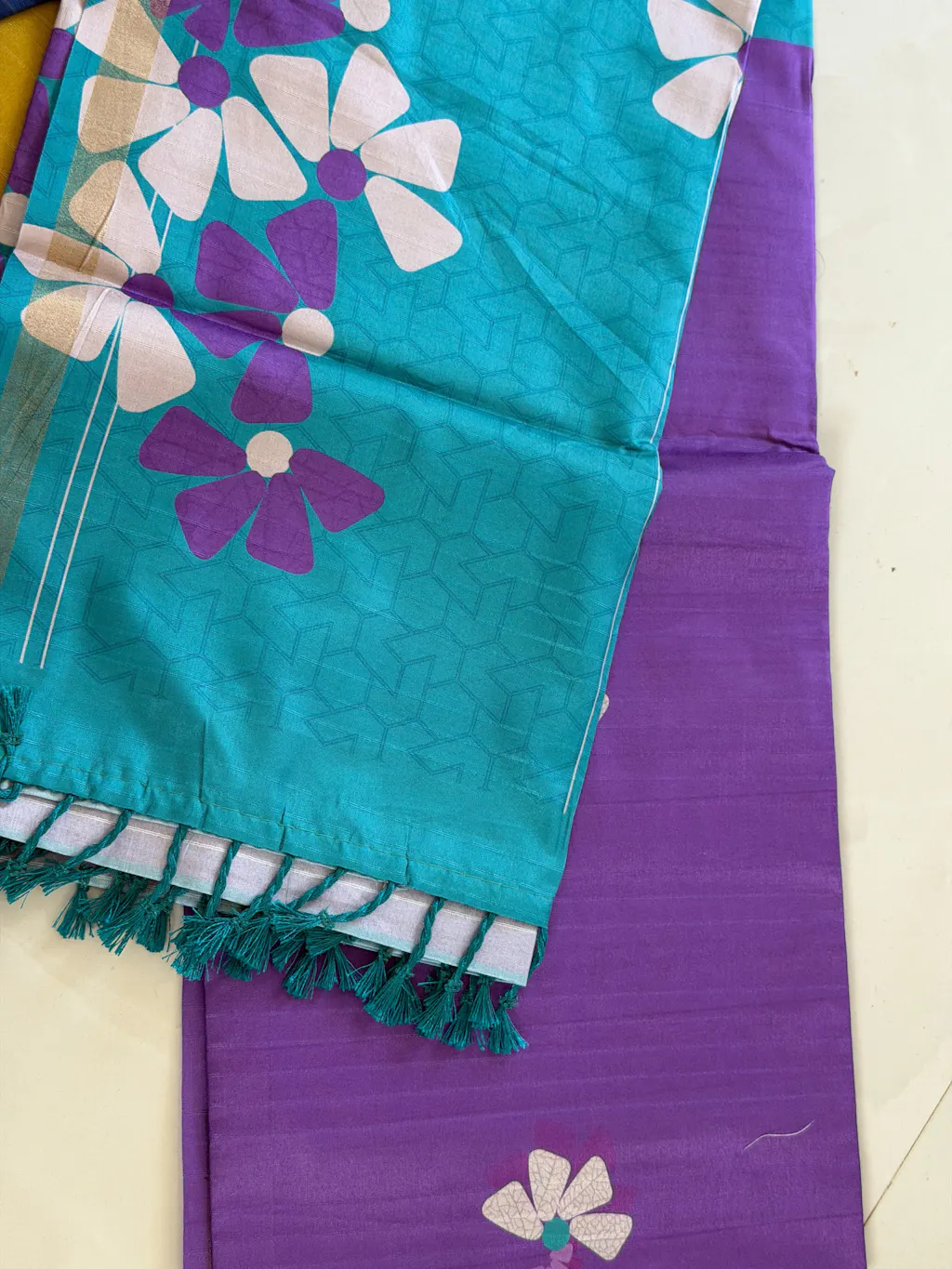 Just Arrived โ๏ธ ๐3D Flower Soft Semi Tussar Silk Saree | Menmai Exclusive ๐ | Lite Eggplant + Teal Blue