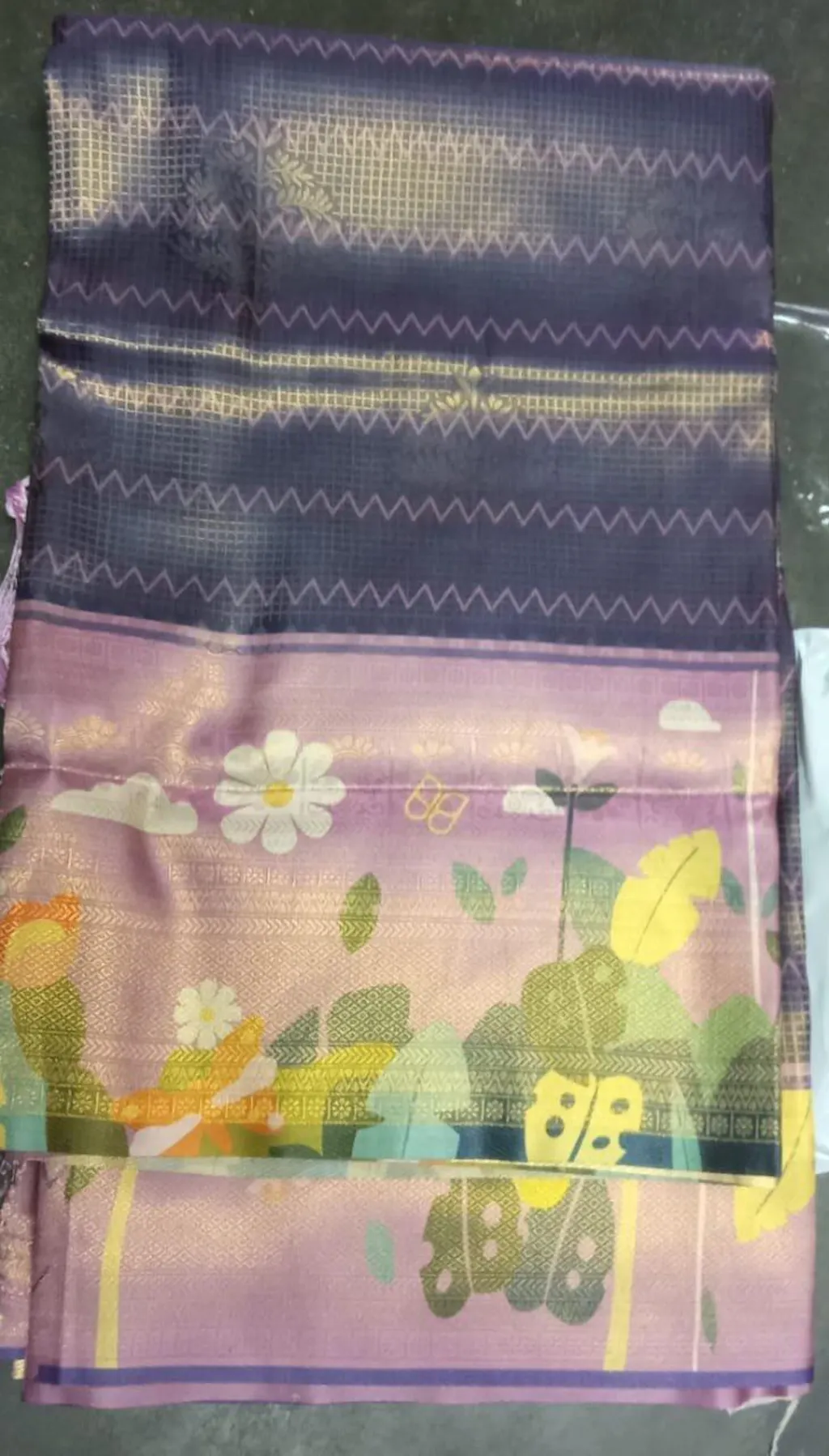 Modern Abstract Border Digital Printed Tissue Silk Saree - Lavender + Sweet Pink
