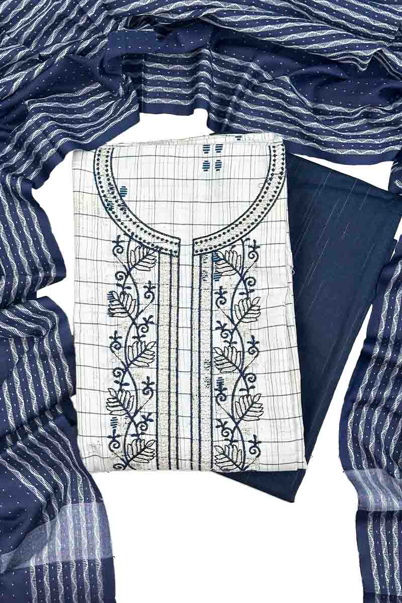 Unstitched Salwar Set - Handloom Cotton | Navy Blue + White