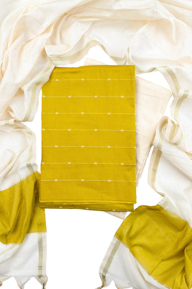 Unstitched Salwar Set - Cotton suit | Light Neon Yellow + Half White