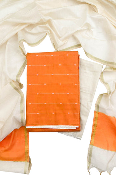 Unstitched Salwar Set - Cotton suit | Red Orange+ Half White
