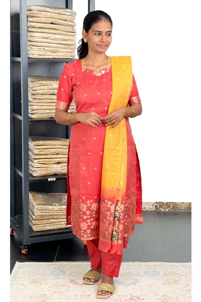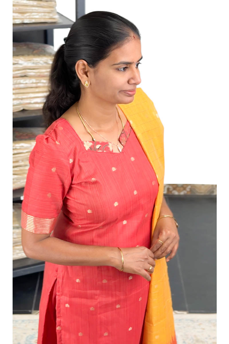 Cotton & Kota Stitched Salwar Suit - XS-4XL (Top, Bottom & Dupatta) / Sunshine Yellow / Menmai Suits 👑