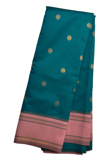 Fusion Silk Saree with Retta Petta Border | Forest Green + Baby Pink